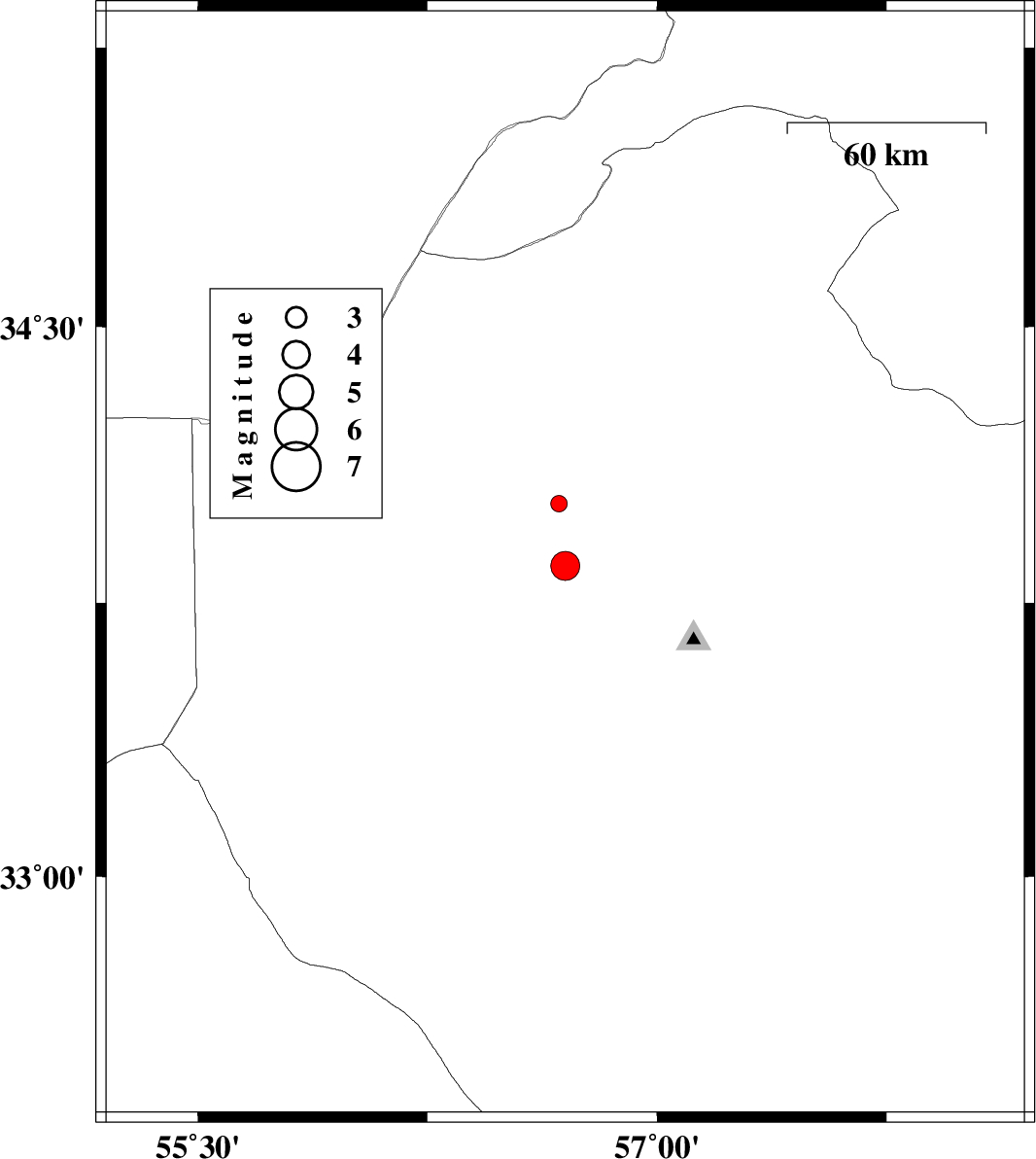 | 2013/08/10 | 12:08:01.6 | 16:38:01.6 | 33.85 | 56.7 | 13 | ML4.3 | Yazd Province, 34 km North-West of Tabas | ||