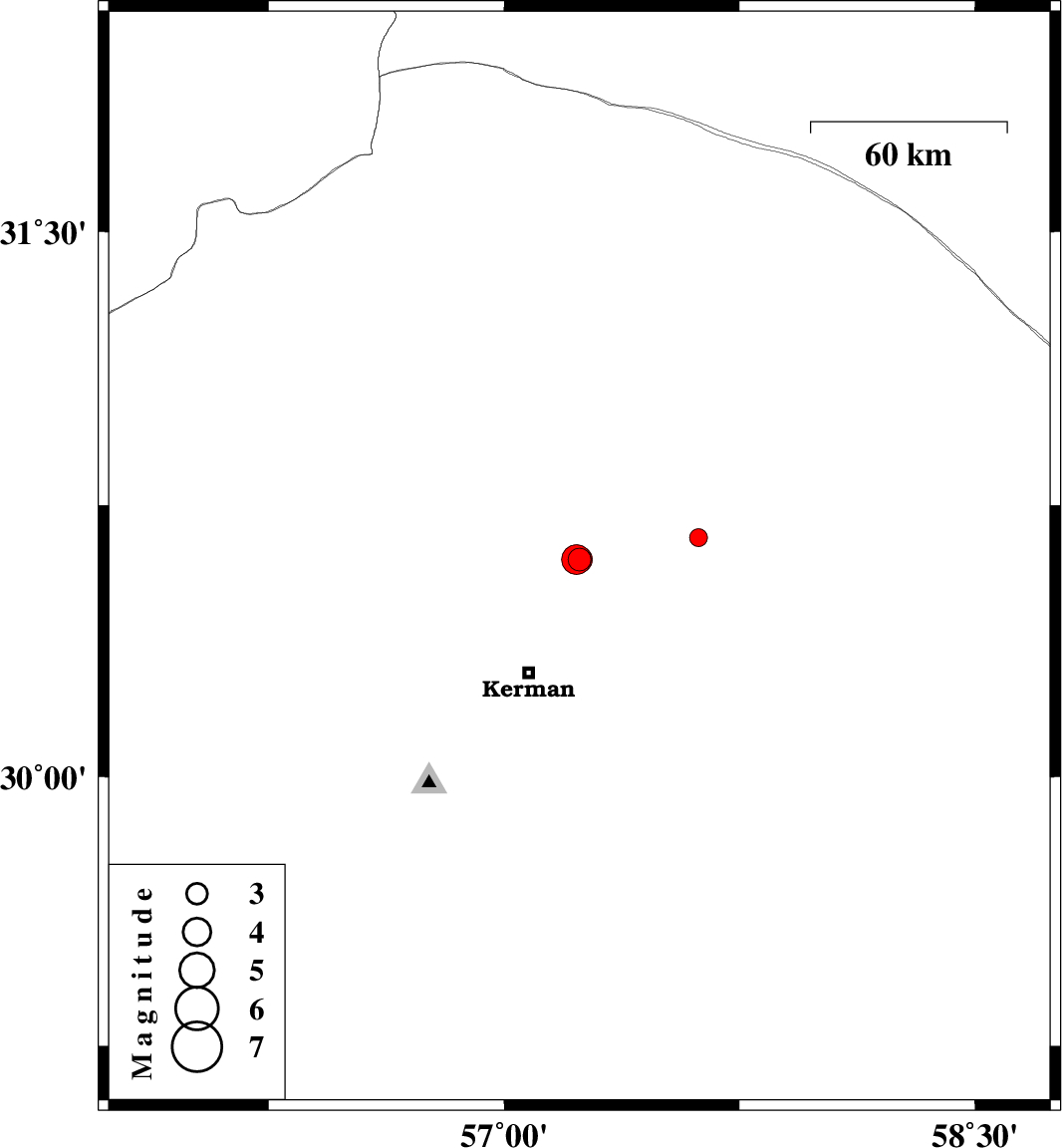 | 2013/08/25 | 12:55:36.1 | 17:25:36.1 | 30.6 | 57.24 | 14 | ML3.7 | Kerman Province, 38 km North-East of Kerman | ||