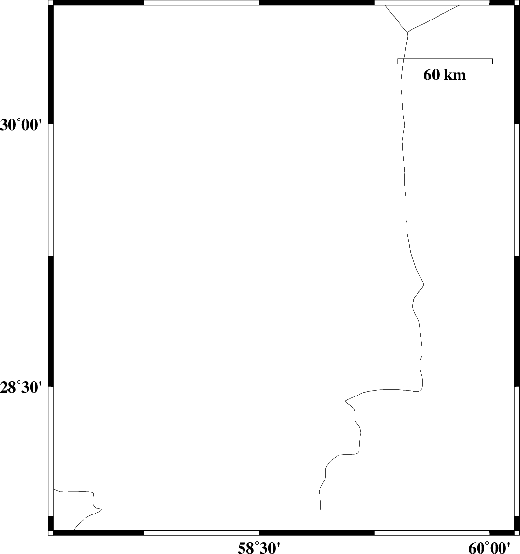 | 2013/09/02 | 00:36:10.3 | 05:06:10.3 | 29.17 | 58.66 | 14 | ML3.2 | Kerman Province, 31 km East of Bam |