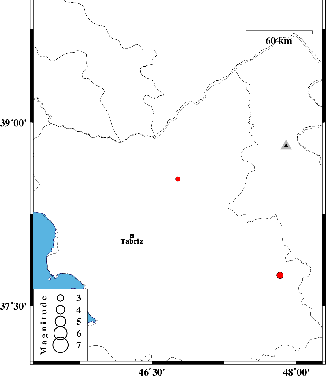 | 2013/08/20 | 07:24:24.7 | 11:54:24.7 | 37.75 | 47.83 | 14 | ML3.1 | Azarbaijan Sharghi Province, 37 km North-East of Mianeh |