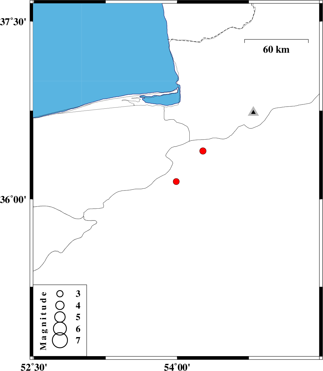 | 2013/09/19 | 07:15:23.8 | 11:45:23.8 | 36.15 | 53.99 | 14 | ML2.9 | Semnan Province, 32 km West of Damghan | ||
