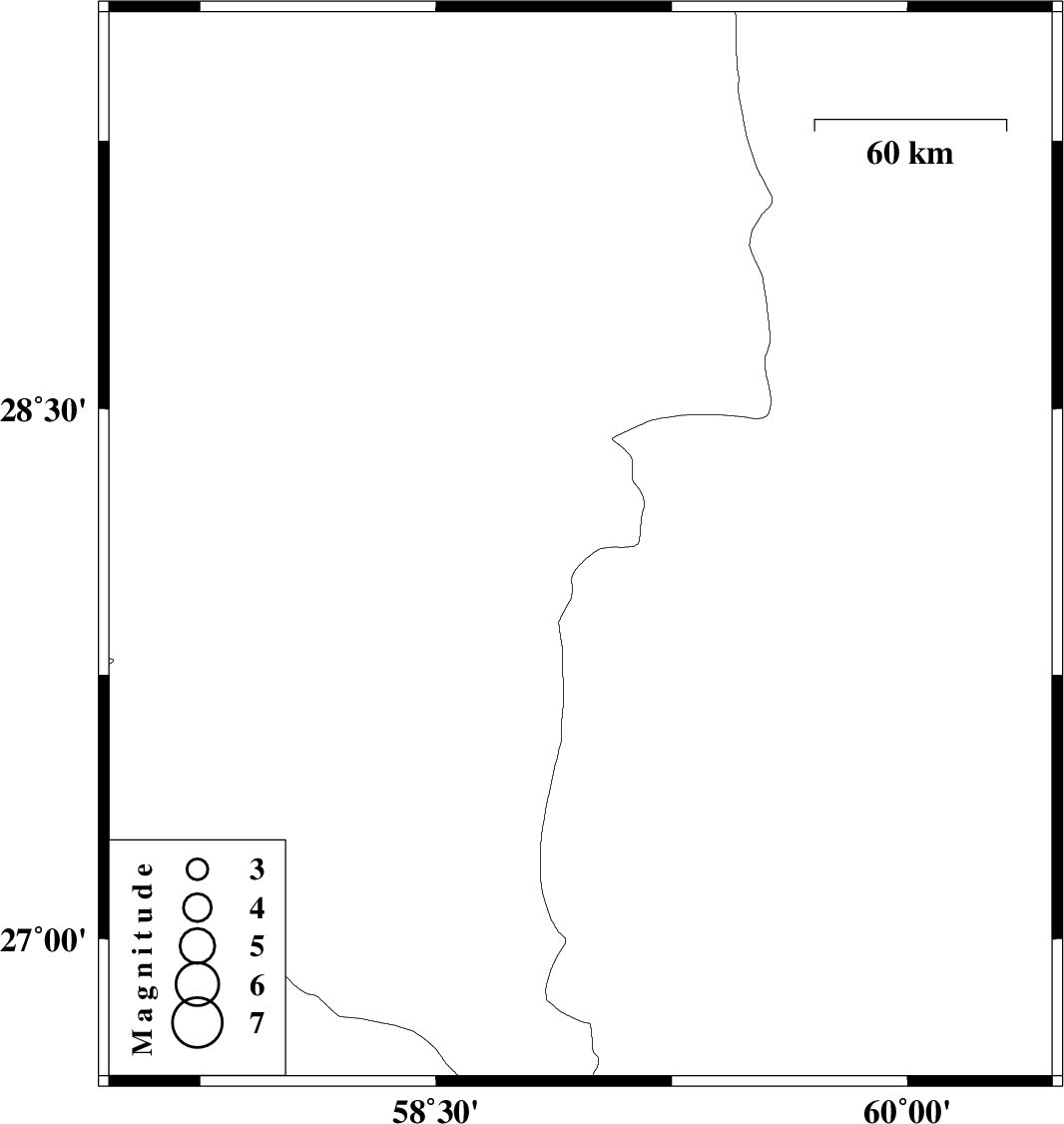 | 2013/09/22 | 23:13:36.4 | 02:43:36.4 | 28.11 | 58.96 | 18 | ML3.3 | Kerman Province, 125 km North-East of Kahnuj |