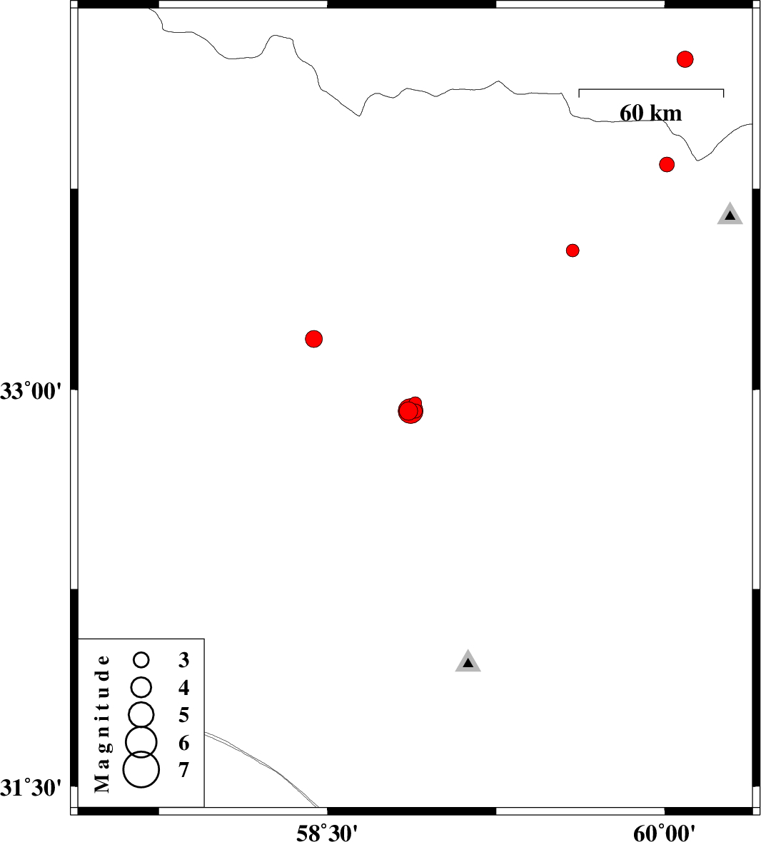 2013/10/05 15:56:27.1 19:26:27.1 32.9258.8514 ML2.9 Khorasan(south) Province, 35 km West of Birjand