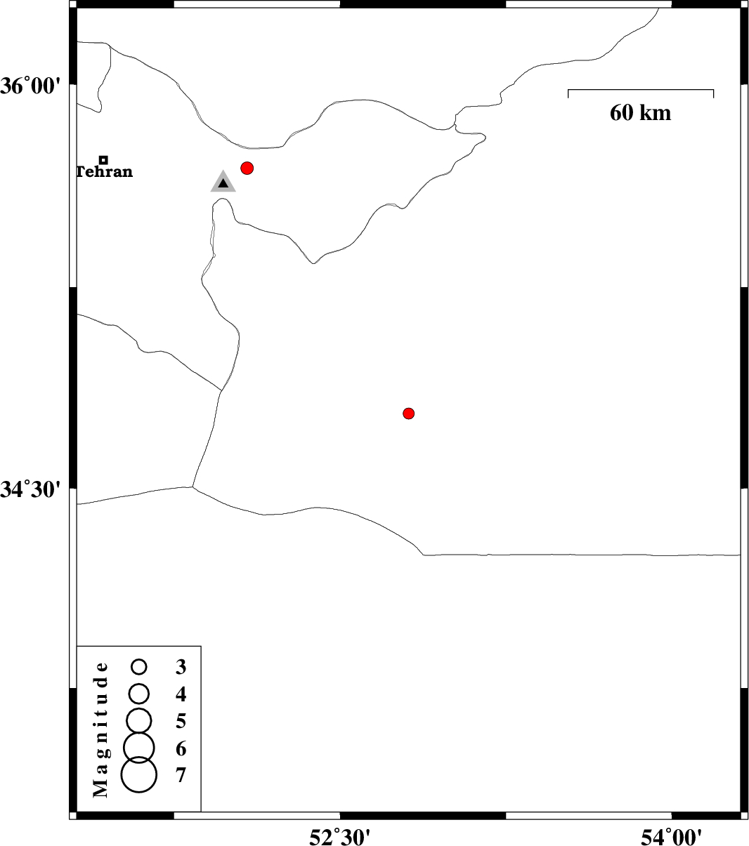 | 2013/10/08 | 04:49:23.1 | 08:19:23.1 | 35.69 | 52.08 | 46 | ML2.5 | Tehran Province, 3 km Damavand |