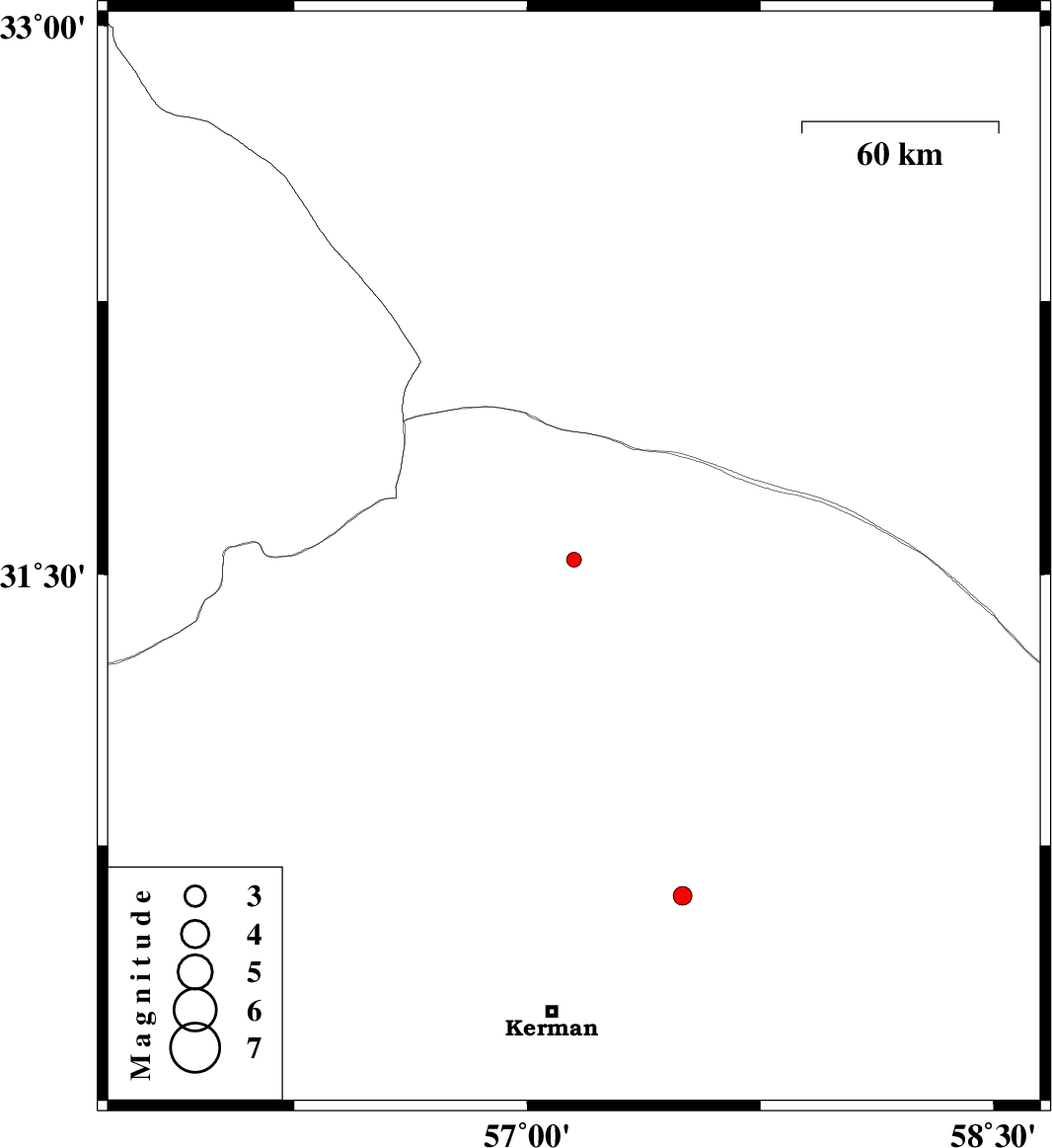 | 2013/10/13 | 00:36:35.1 | 04:06:35.1 | 31.54 | 57.15 | 16 | ML2.1 | Kerman Province, 44 km North-East of Ravar | ||