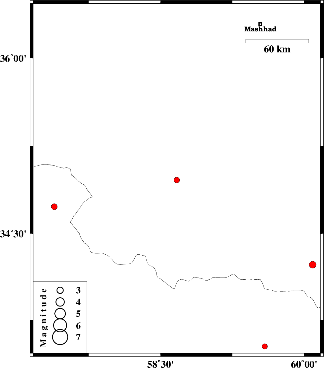 | 2013/09/21 | 07:53:47.1 | 12:23:47.1 | 34.23 | 60.09 | 28 | ML3.2 | Khorasan(center) Province, 38 km South of Khaf |