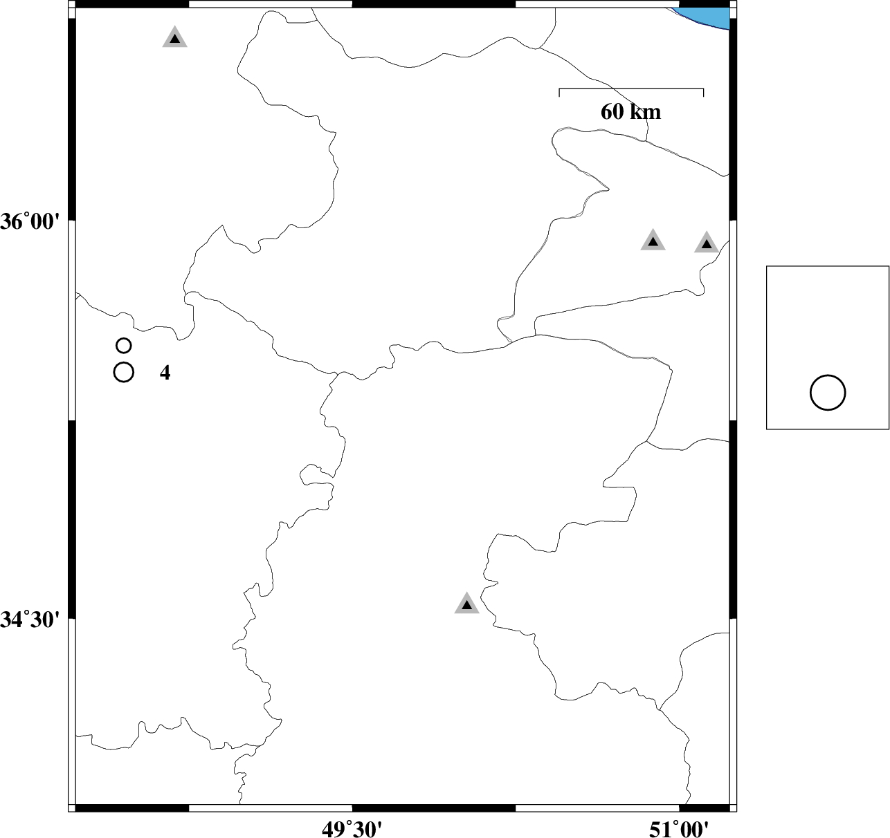 | 2013/10/16 | 08:49:32.4 | 12:19:32.4 | 35.29 | 49.73 | 6 | ML4.6 | Markazi Province, 63 km East of Razan |