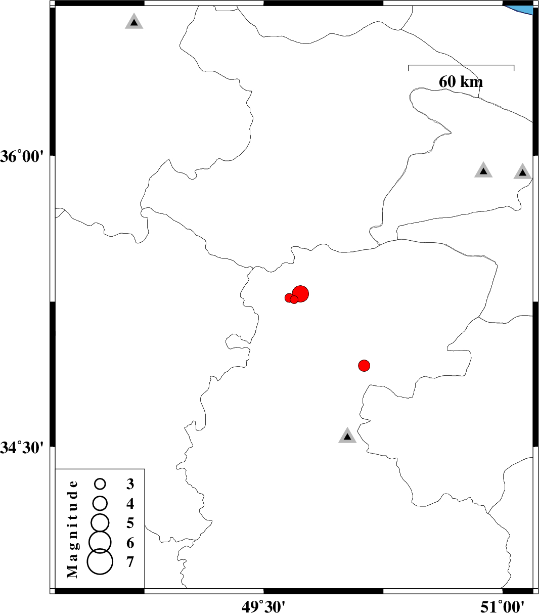 | 2013/10/16 | 08:49:32.4 | 12:19:32.4 | 35.29 | 49.73 | 6 | ML4.6 | Markazi Province, 63 km East of Razan |
