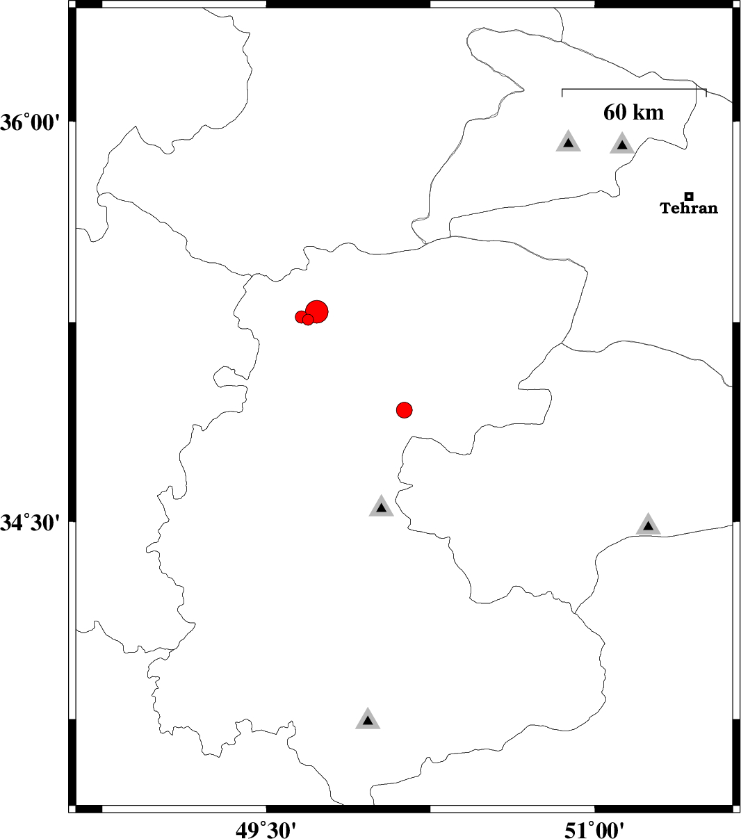 | 2013/10/16 | 08:49:32.4 | 12:19:32.4 | 35.29 | 49.73 | 6 | ML4.6 | Markazi Province, 63 km East of Razan |