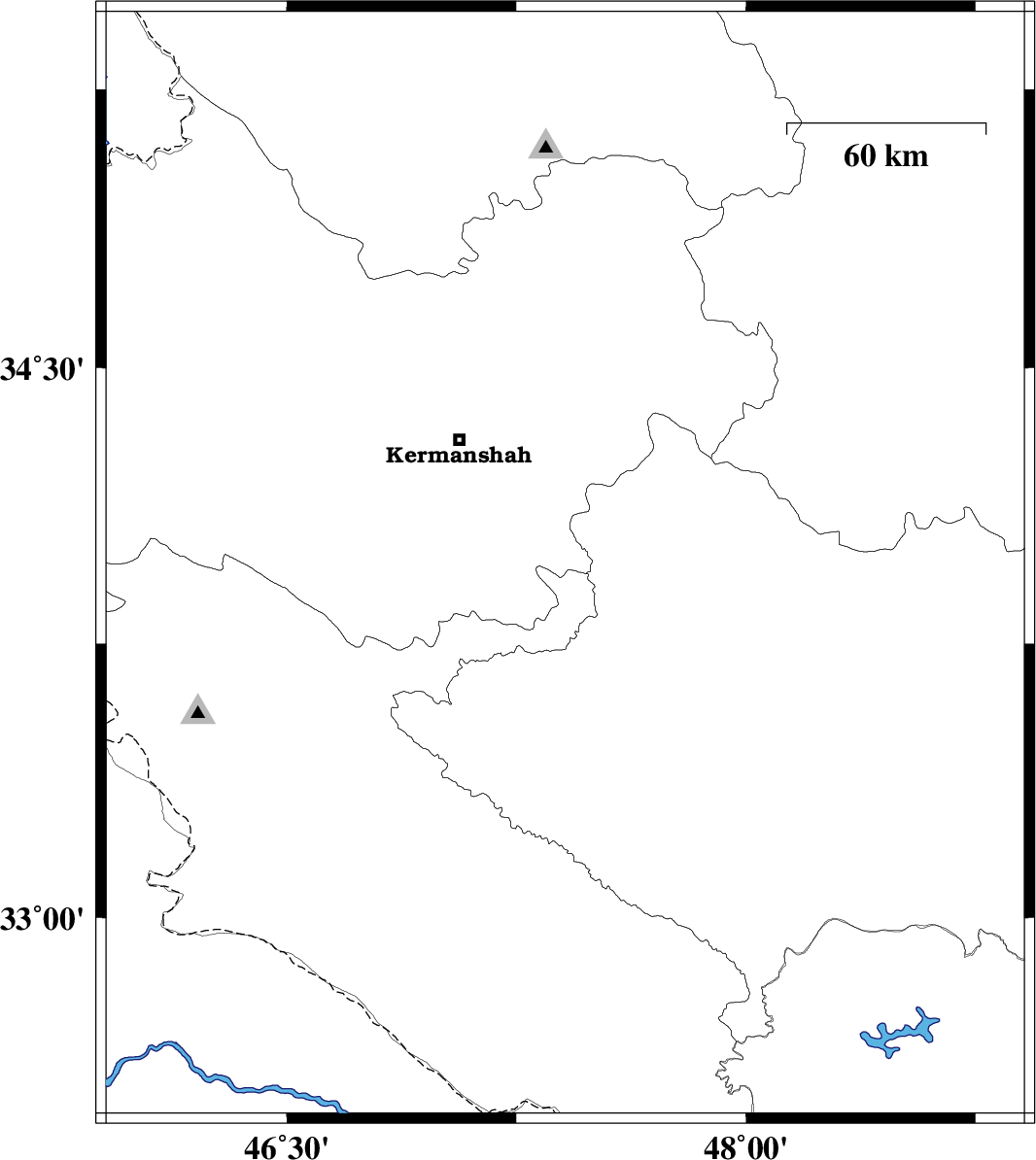 | 2013/10/23 | 13:52:57.9 | 17:22:57.9 | 33.96 | 47.41 | 14 | ML3.3 | Kermanshah Province, 38 km South-West of Harsin |