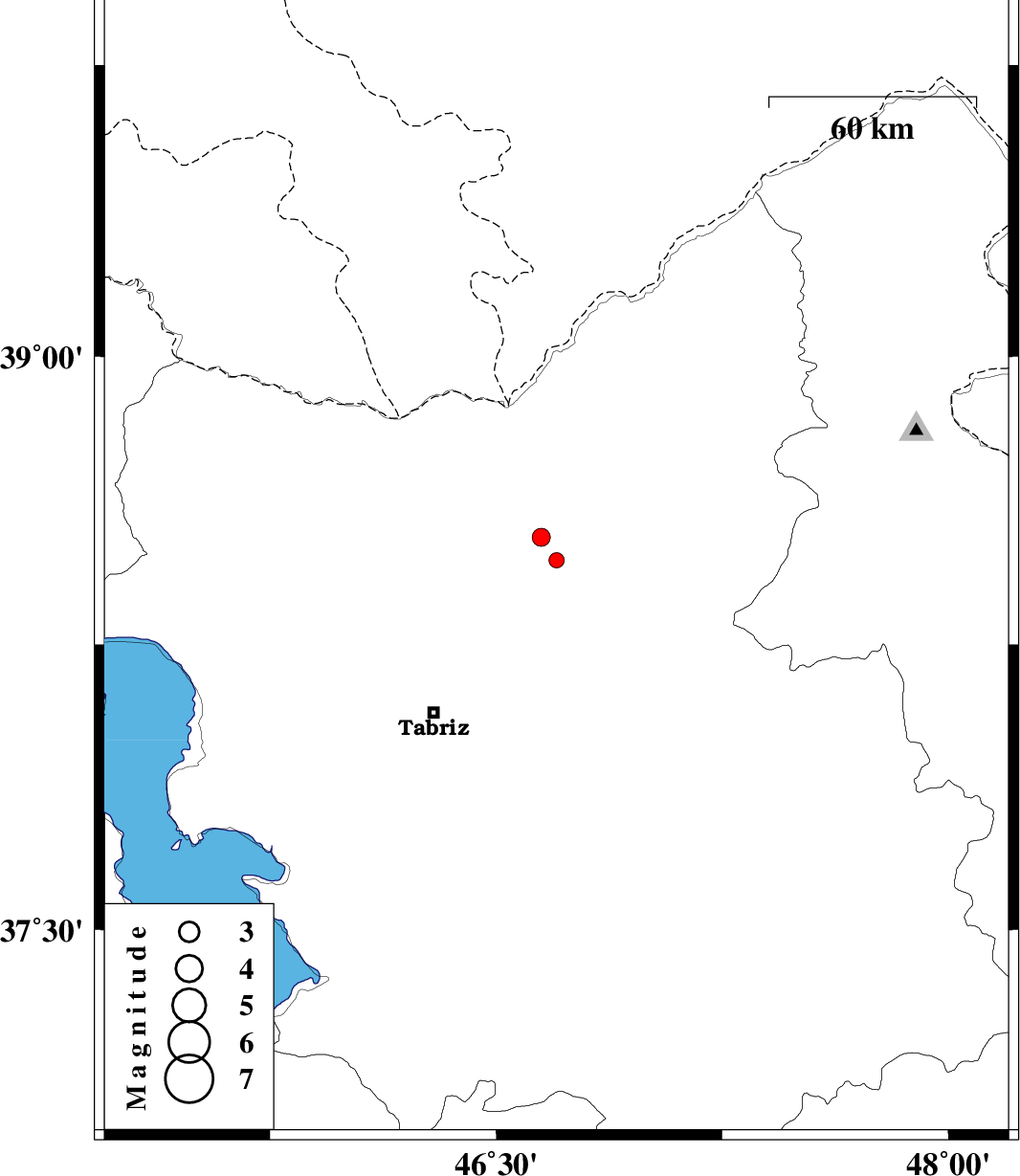 | 2013/10/26 | 18:31:48.6 | 22:01:48.6 | 38.47 | 46.7 | 15 | ML2.3 | Azarbaijan Sharghi Province, 34 km West of Ahar | ||