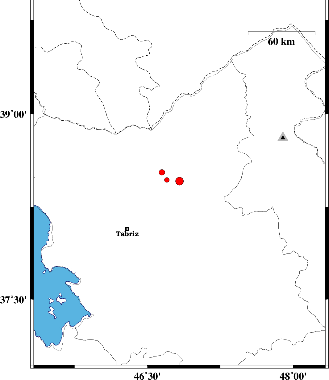 | 2013/10/26 | 18:31:48.6 | 22:01:48.6 | 38.47 | 46.7 | 15 | ML2.3 | Azarbaijan Sharghi Province, 34 km West of Ahar | ||