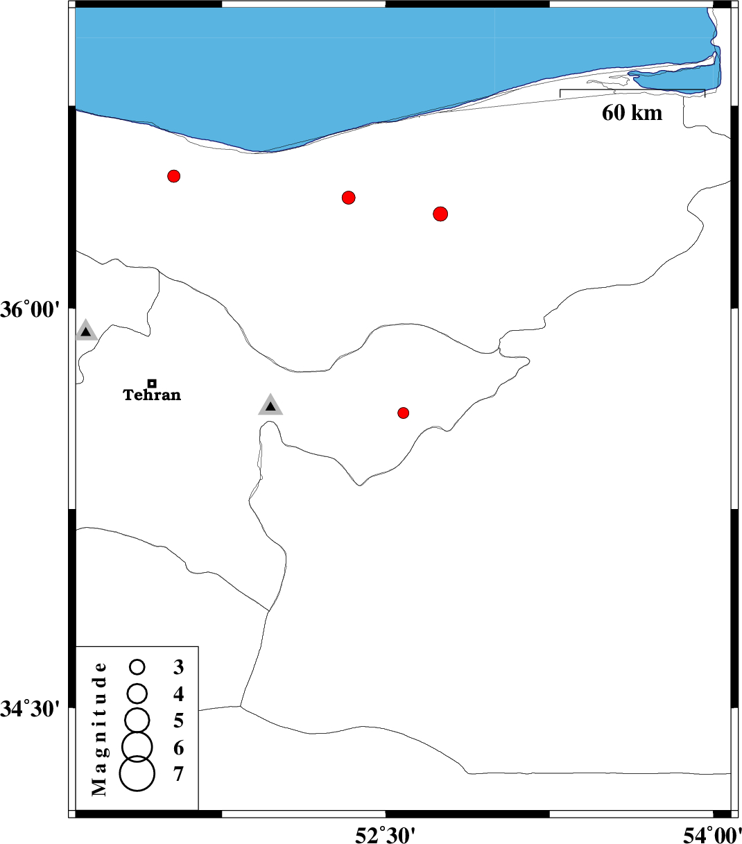 | 2013/11/12 | 14:57:02.5 | 18:27:02.5 | 35.61 | 52.58 | 13 | ML2.3 | Tehran Province, 23 km South-West of Firuzkuh | ||