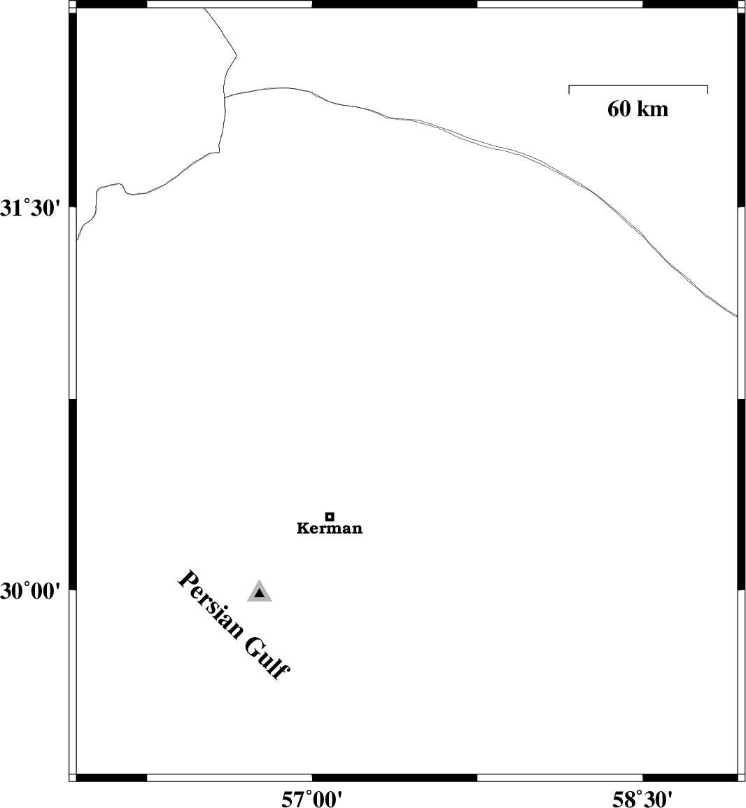 | 2013/11/12 | 02:27:23.4 | 05:57:23.4 | 30.42 | 57.11 | 14 | ML3.8 | Kerman Province, 15 km North of Kerman |