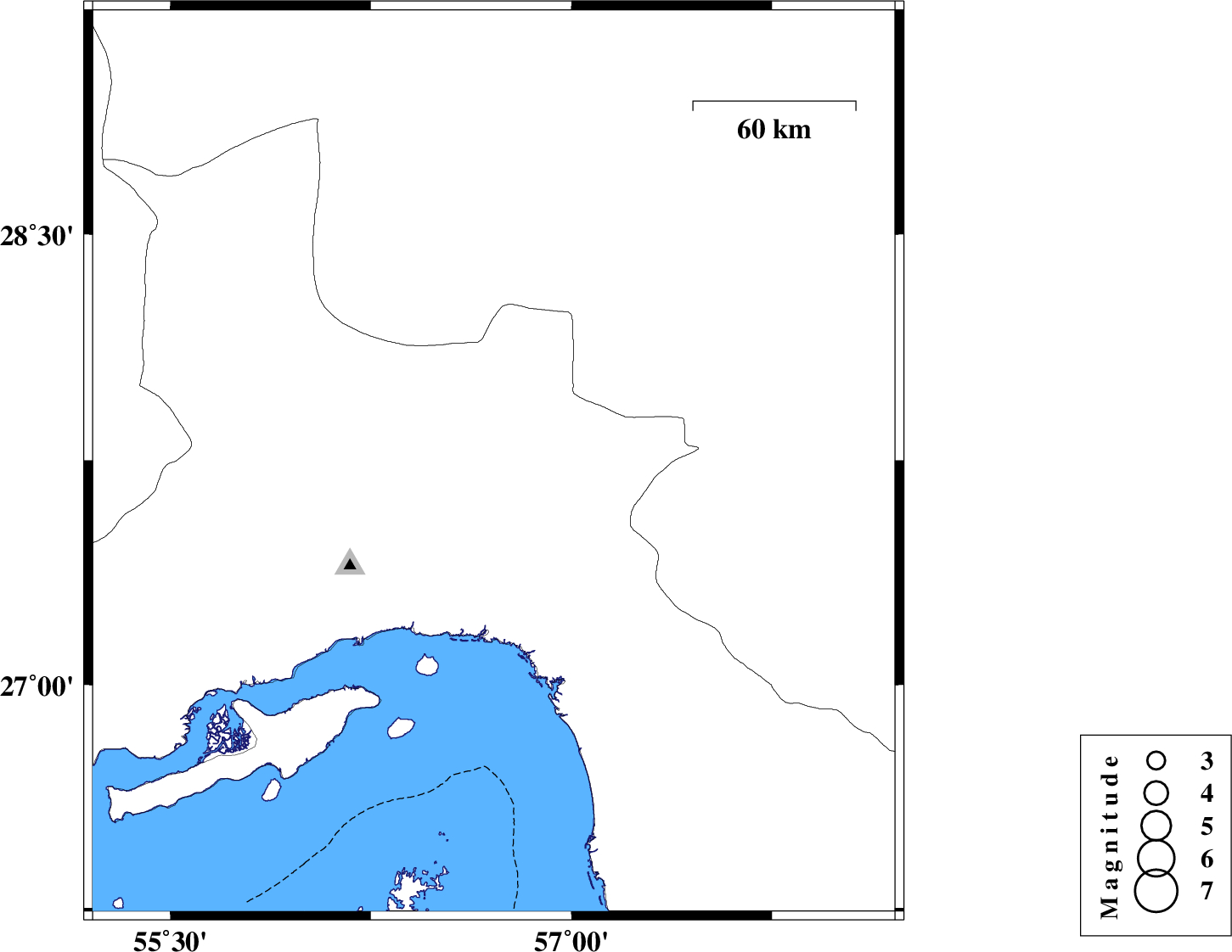 Oman Sea, 46 km South-West of Minab | |