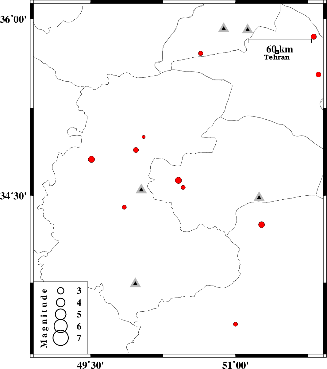 2013/11/09 04:09:09.5 07:39:09.5 3550.056 ML1.6 Markazi Province, 28 km West of Saveh