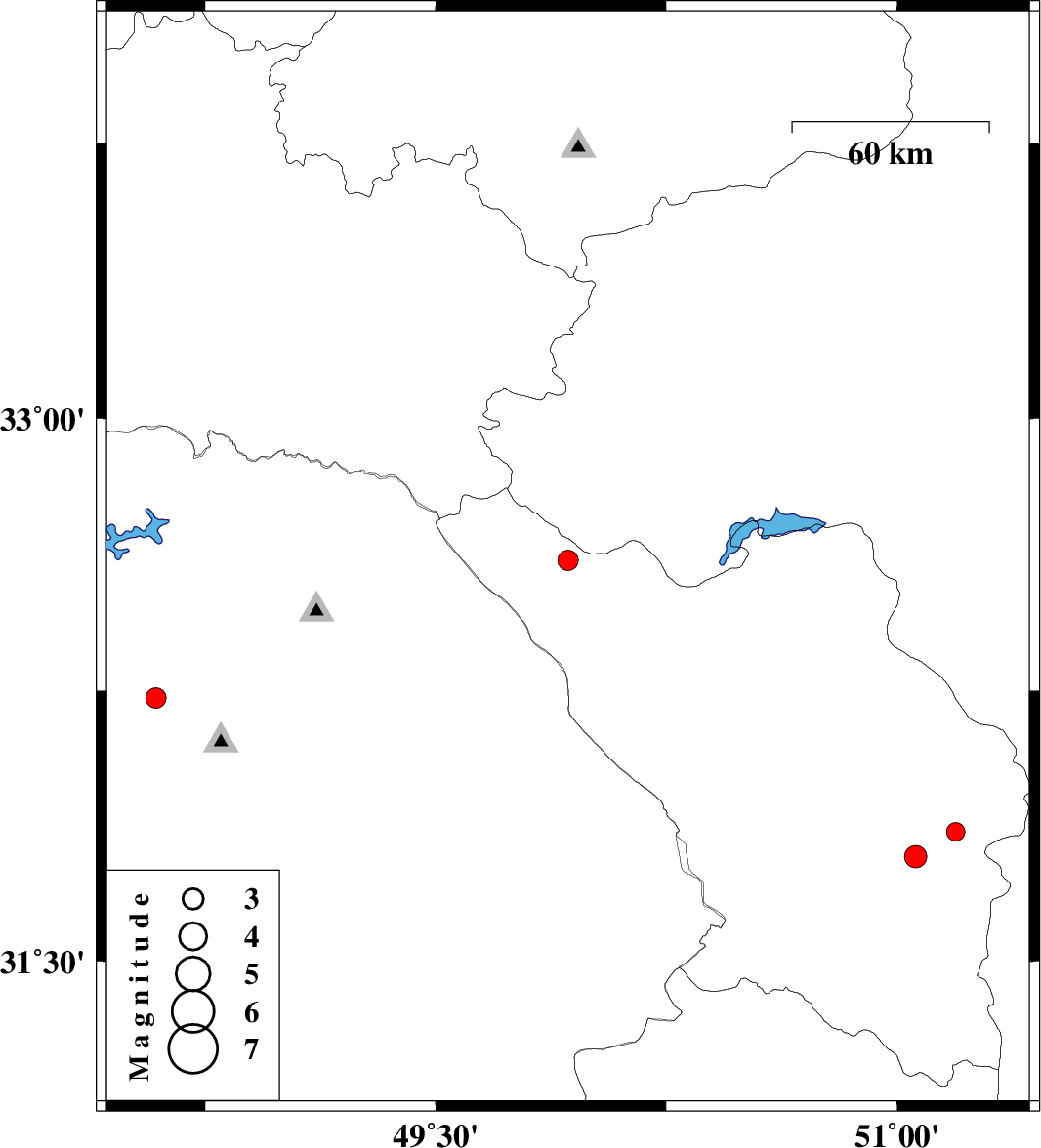 | 2013/12/05 | 12:59:50.4 | 16:29:50.4 | 32.23 | 48.59 | 18 | ML3 | Khoozestan Province, 24 km South-East of Dezful | ||