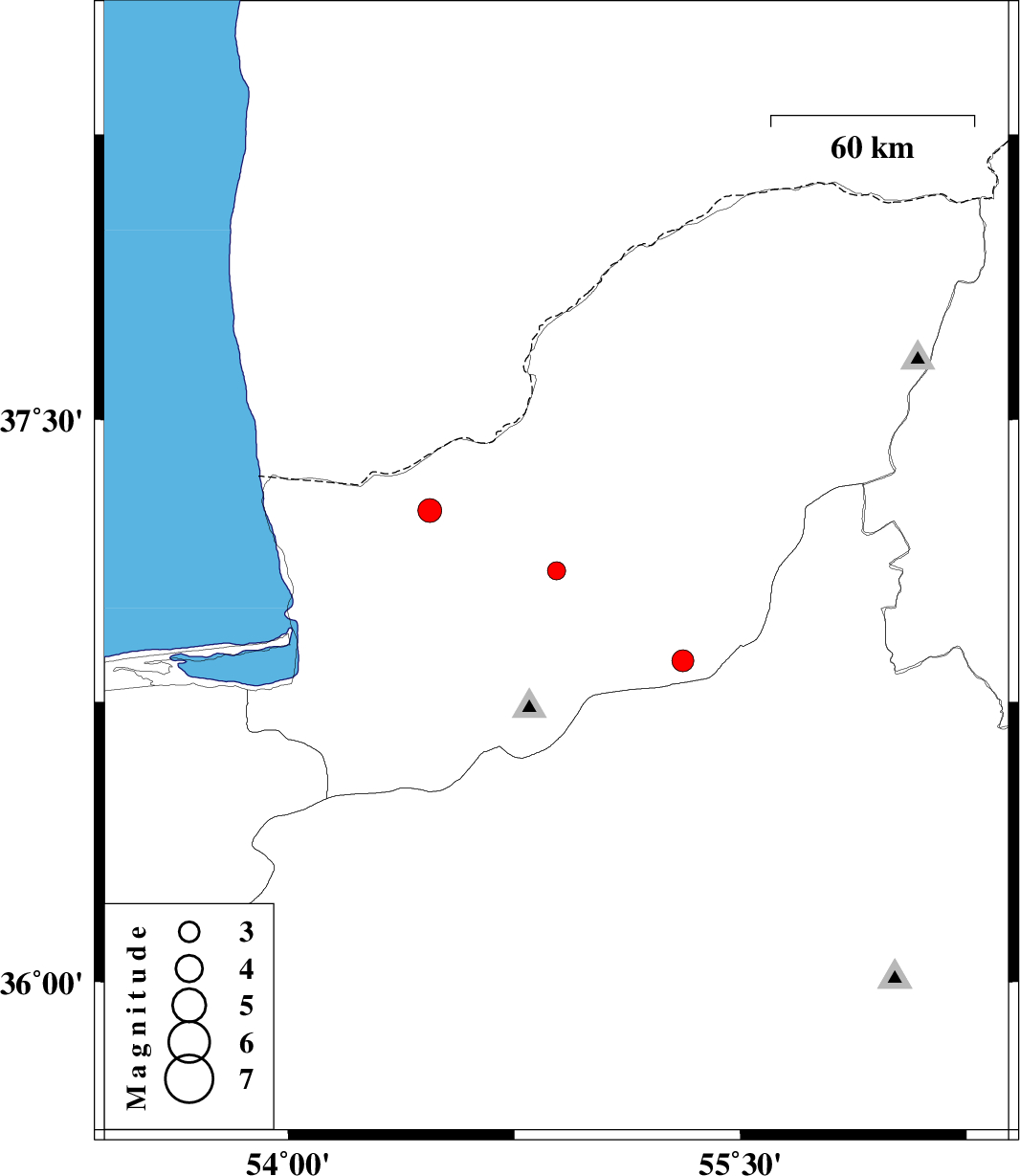 | 2013/12/03 | 19:34:48.7 | 23:04:48.7 | 36.86 | 55.31 | 15 | ML3.2 | Golestan Province, 23 km South-East of Ramian | ||