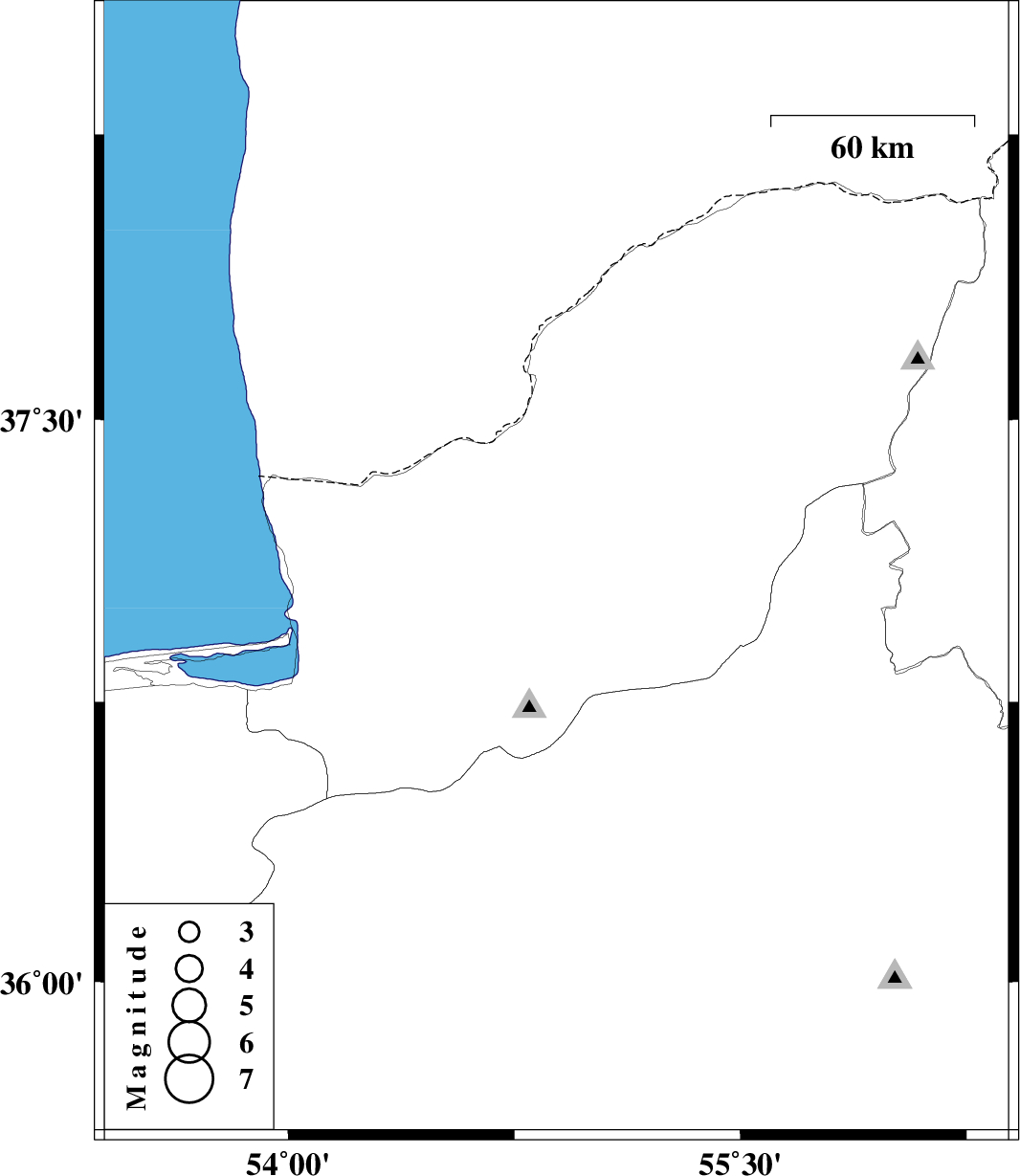 | 2013/12/11 | 05:27:11.3 | 08:57:11.3 | 37.1 | 54.89 | 14 | ML2.7 | Golestan Province, 22 km North of Ali Abad |