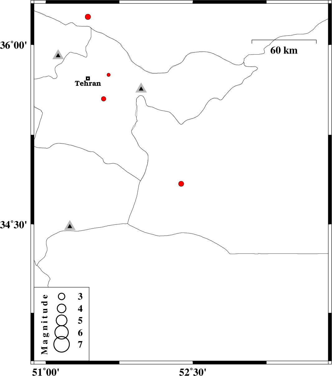 | 2013/12/18 | 08:01:56.6 | 11:31:56.6 | 34.84 | 52.38 | 14 | ML2.4 | Semnan Province, 43 km South of Garmsar | ||