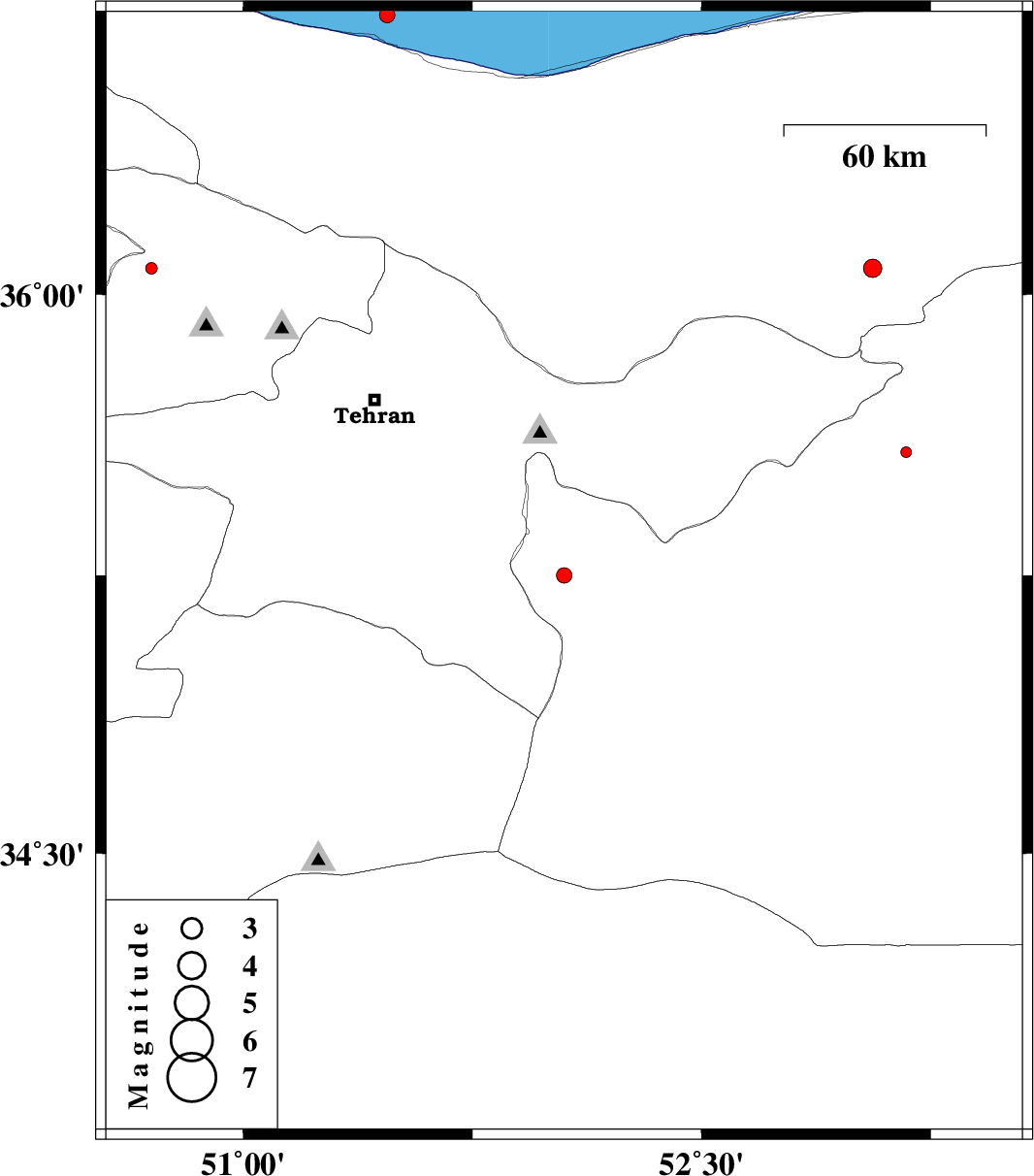 | 2014/01/06 | 01:37:24.1 | 05:07:24.1 | 35.25 | 52.05 | 38 | ML2.2 | Semnan Province, 26 km West of Garmsar | ||