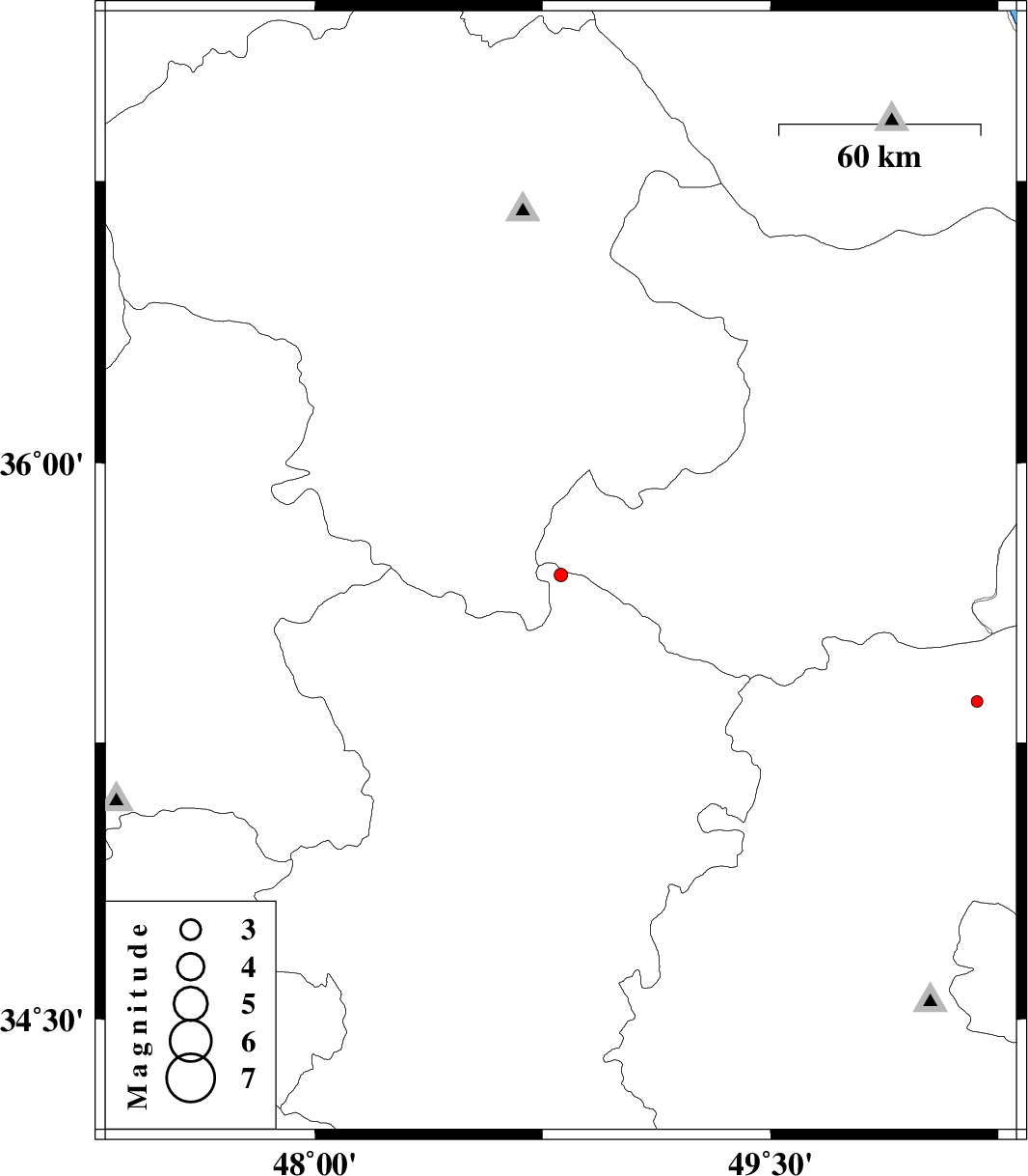 | 2014/01/06 | 11:13:40.1 | 14:43:40.1 | 35.36 | 50.18 | 14 | ML1.7 | Markazi Province, 41 km North-West of Saveh |