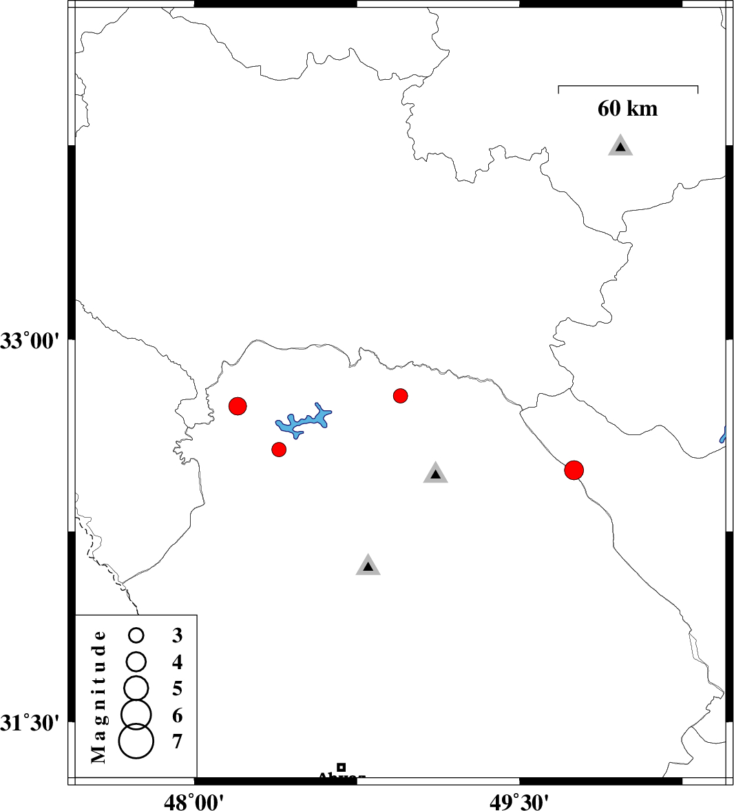 | 2014/01/13 | 06:18:19.5 | 09:48:19.5 | 32.57 | 48.39 | 14 | ML3 | Khoozestan Province, 13 km North of Andimeshk | ||
