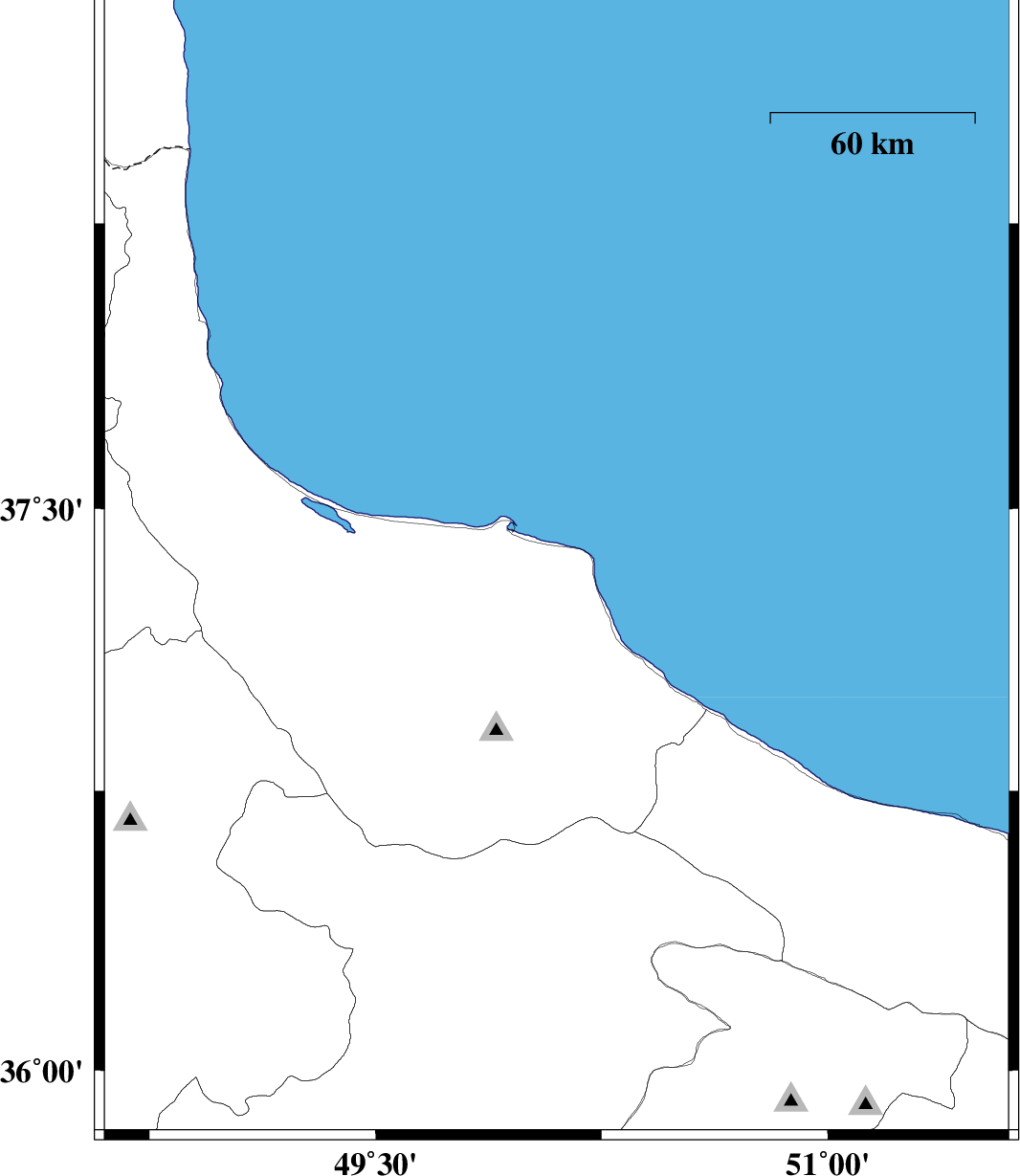 | 2013/12/30 | 04:58:52.8 | 08:28:52.8 | 37.07 | 50.4 | 15 | ML3 | Gilan Province, 12 km East of Rudsar | ||