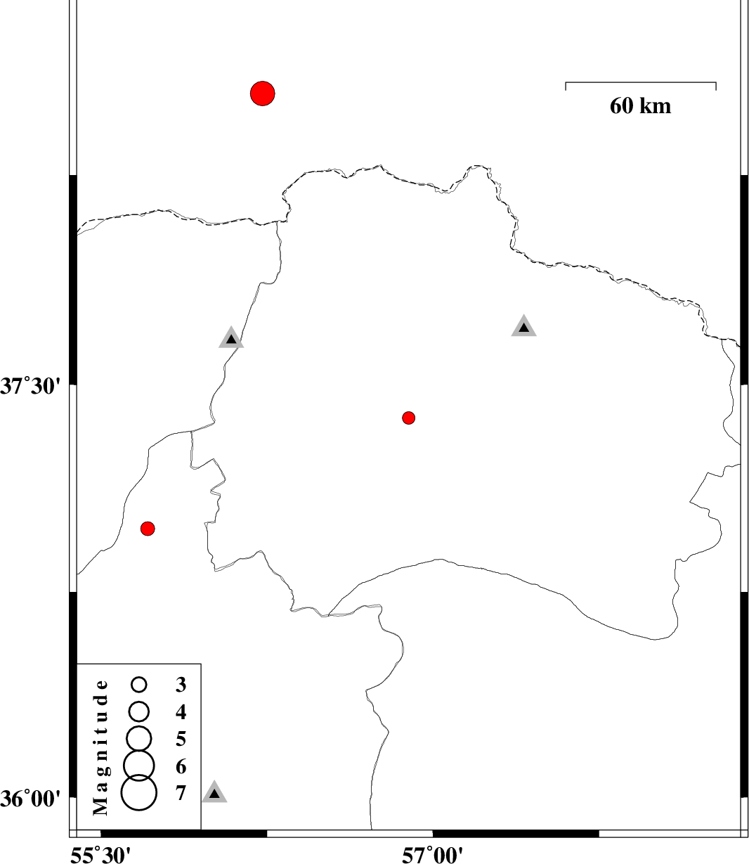 | 2014/02/15 | 07:58:03.0 | 11:28:03.0 | 37.38 | 56.89 | 18 | ML2.5 | Khorasan(north) Province, 19 km South of Ashkhaneh | ||