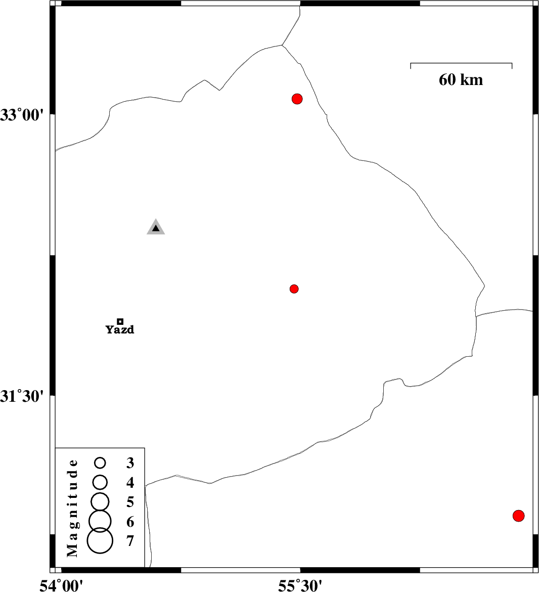 | 2014/02/21 | 13:01:20.2 | 16:31:20.2 | 32.07 | 55.46 | 14 | ML2.4 | Yazd Province, 53 km North of Bafq | ||