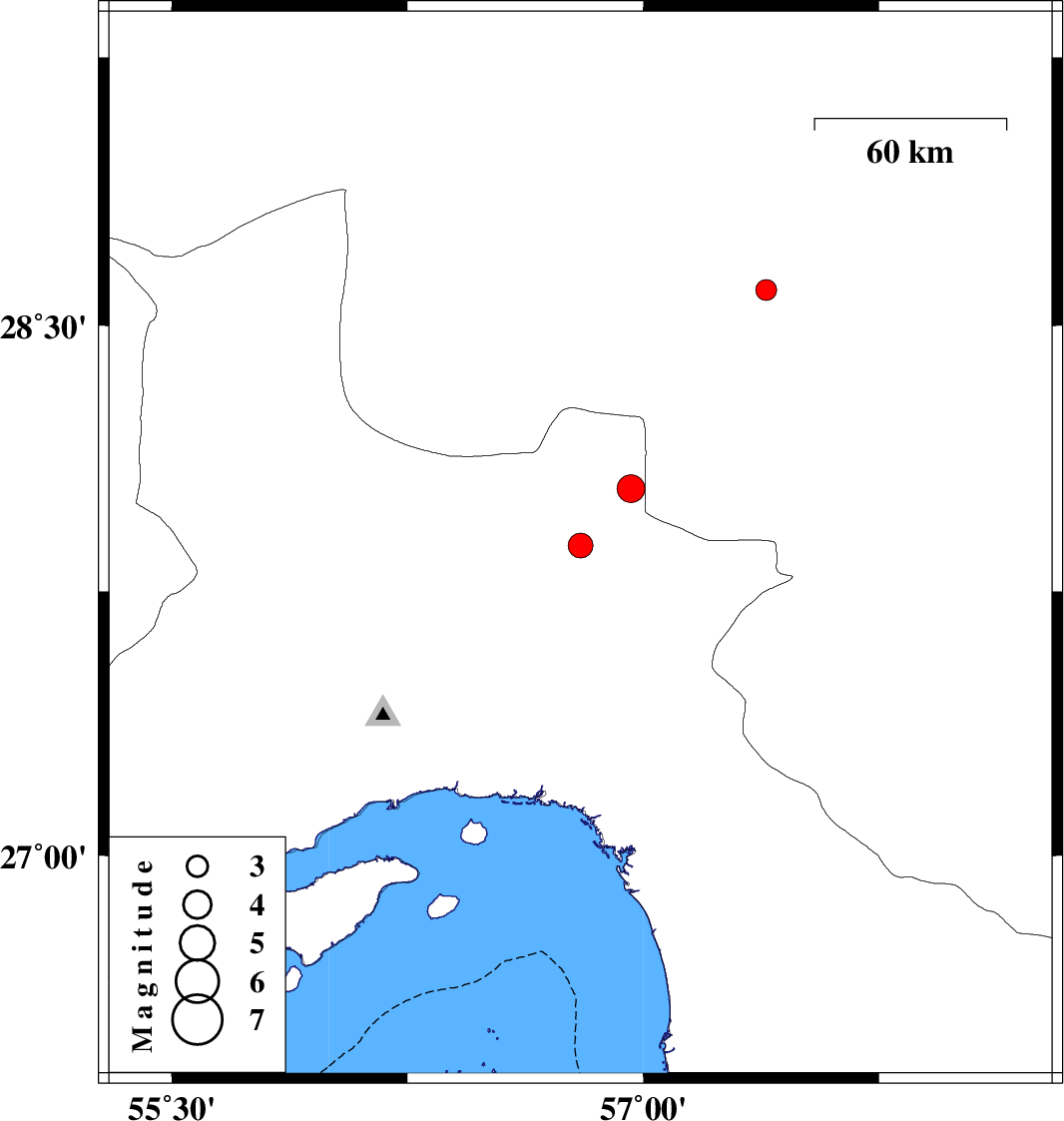 | 2014/02/20 | 10:06:46.1 | 13:36:46.1 | 28.6 | 57.39 | 18 | ML3 | Kerman Province, 35 km West of Jiroft |