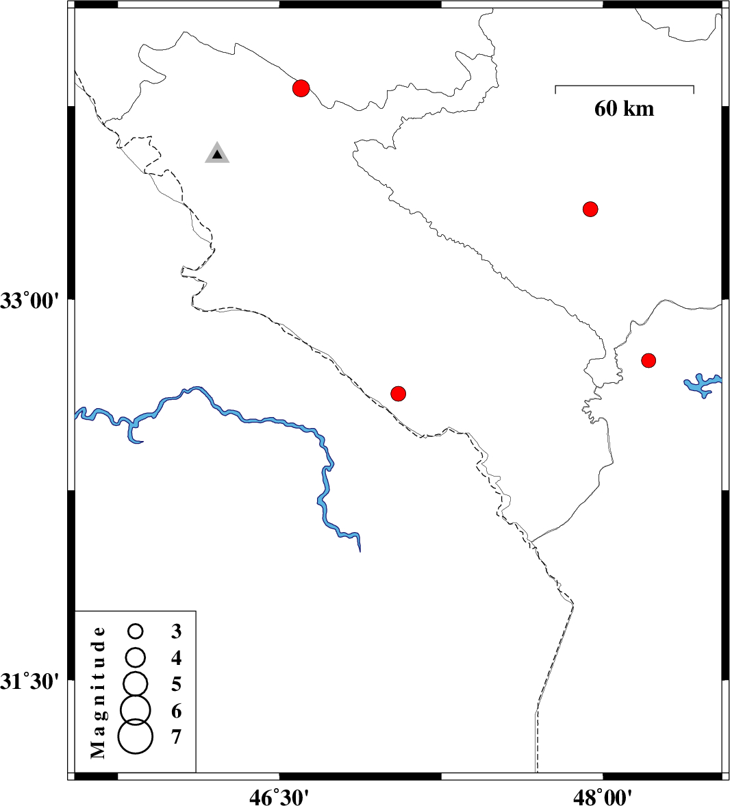 | 2014/02/23 | 11:52:36.4 | 15:22:36.4 | 33.35 | 47.94 | 14 | ML3.1 | Lorestan Province, 30 km North-East of Pol-e dokhtar | ||