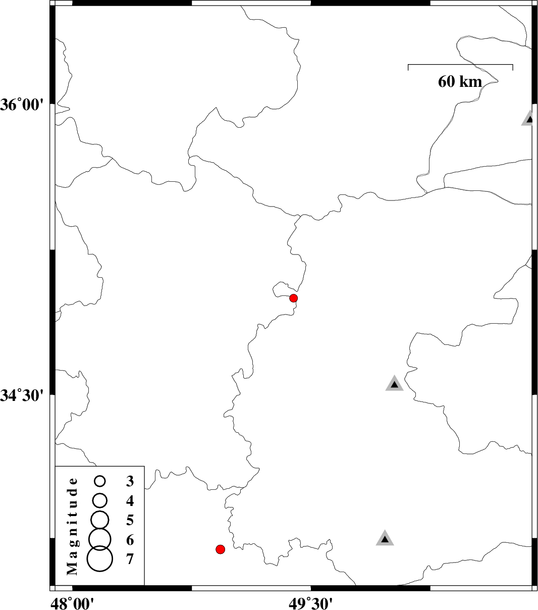 | 2014/03/02 | 05:50:20.6 | 09:20:20.6 | 33.69 | 48.93 | 15 | ML2.6 | Lorestan Province, 27 km North-West of Dorud |