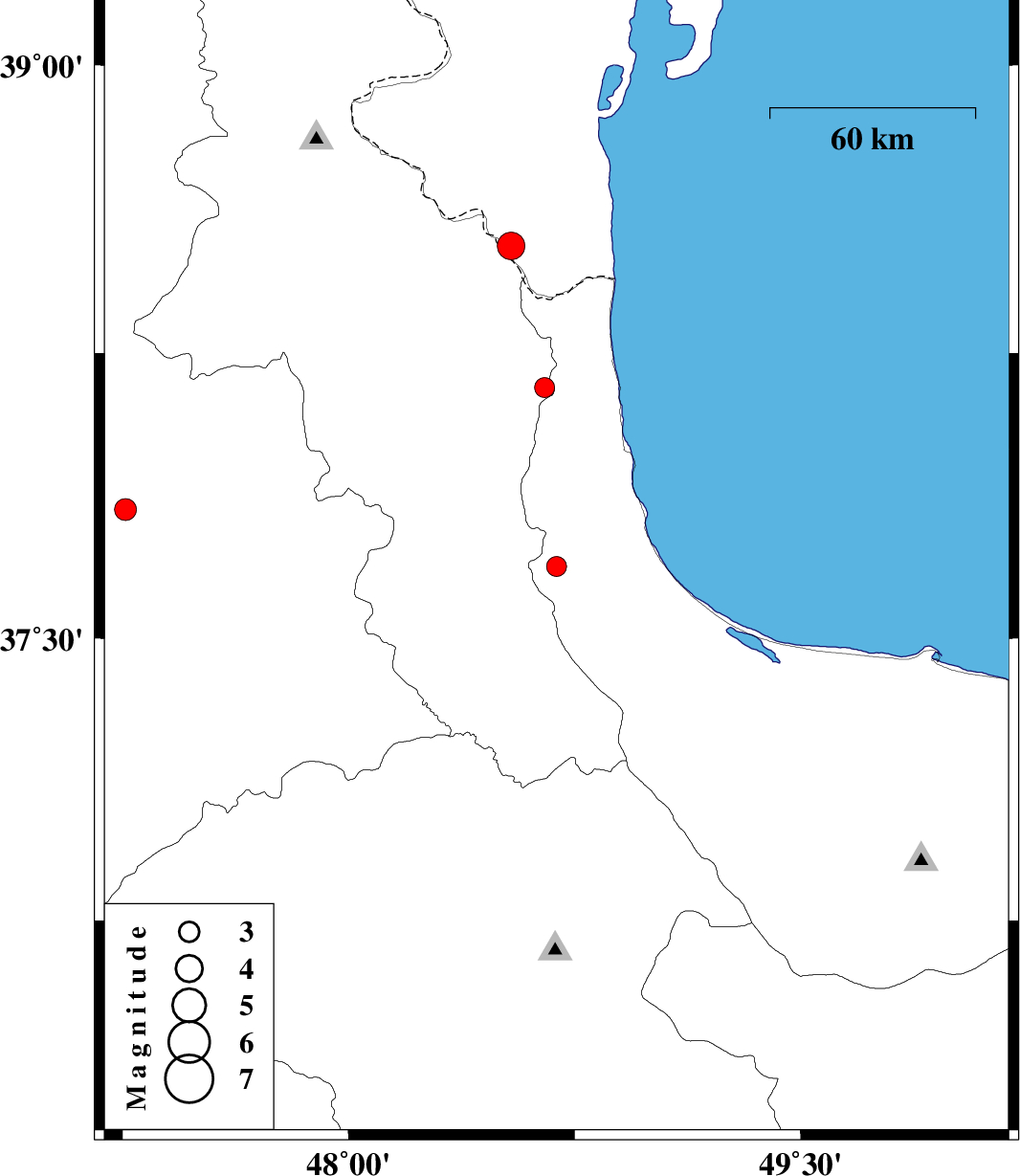 | 2014/02/09 | 19:16:00.6 | 22:46:00.6 | 38.16 | 48.65 | 14 | ML3 | Ardebil Province, 32 km East of Ardabil | ||