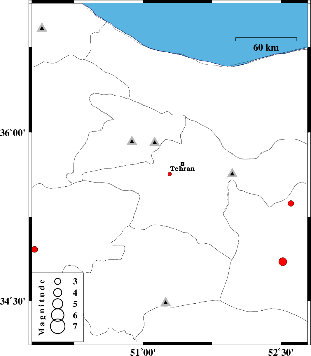 | 2014/03/02 | 00:57:47.4 | 04:27:47.4 | 34.85 | 52.52 | 14 | ML3.9 | Semnan Province, 45 km South-East of Garmsar |