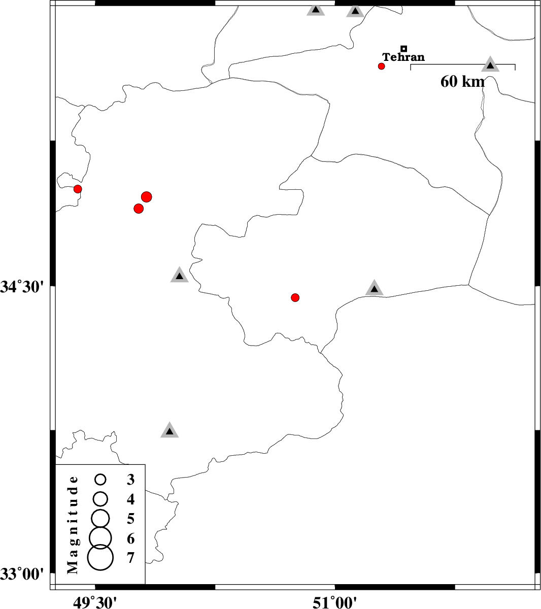 | 2014/03/06 | 01:48:02.4 | 05:18:02.4 | 34.96 | 49.82 | 16 | ML3 | Markazi Province, 35 km North-West of Tafresh | ||