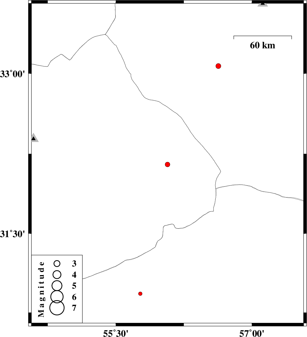 | 2014/02/27 | 14:08:41.7 | 17:38:41.7 | 30.93 | 55.77 | 15 | ML1.9 | Kerman Province, 63 km North-West of Rafsanjan |