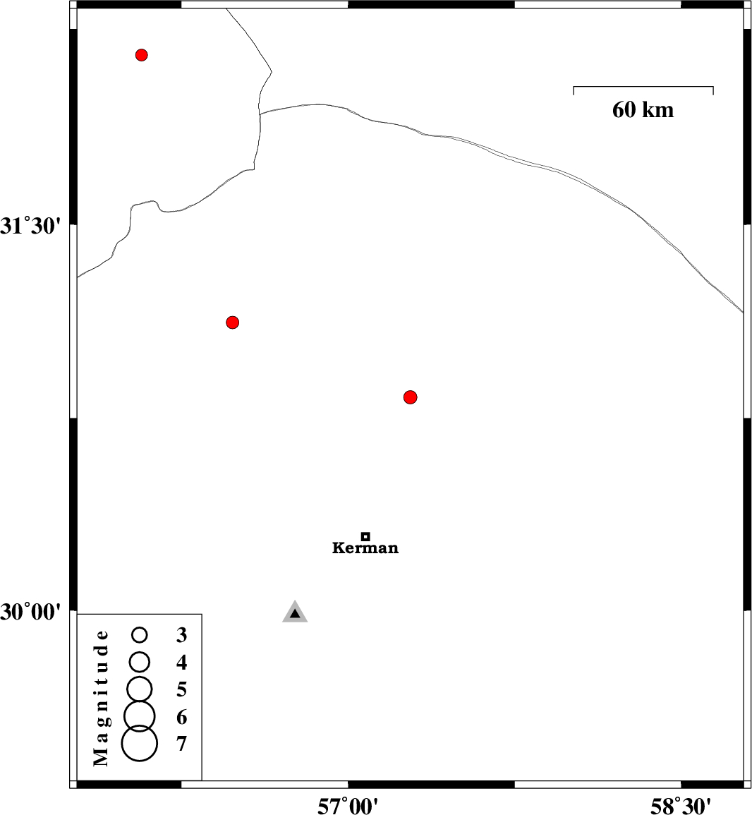 | 2014/03/09 | 05:07:05.0 | 08:37:05.0 | 30.83 | 57.28 | 16 | ML2.7 | Kerman Province, 68 km East of Zarand | ||