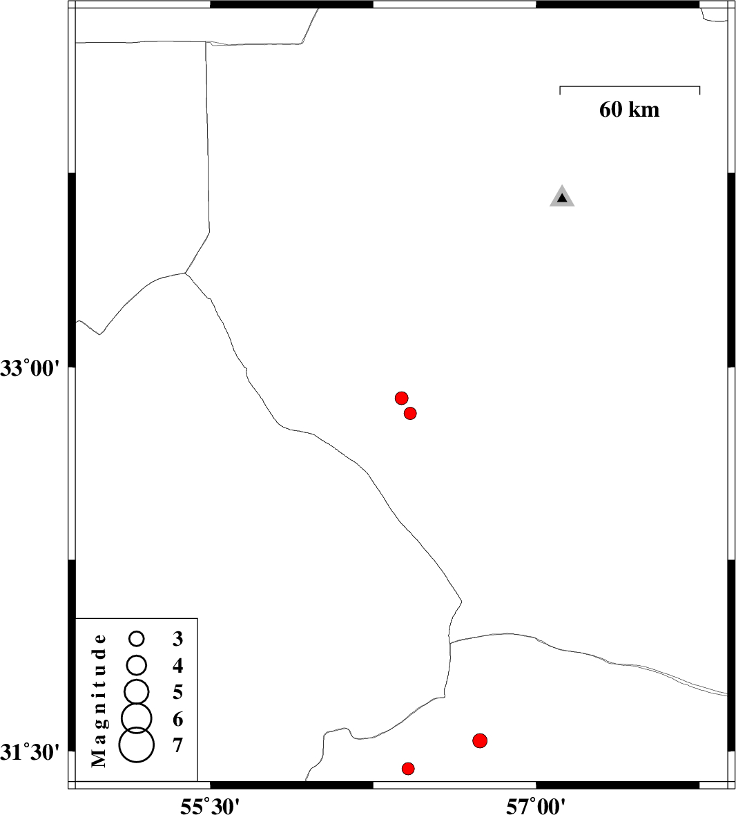 | 2014/03/17 | 06:01:14.3 | 09:31:14.3 | 32.82 | 56.42 | 15 | ML2.6 | Yazd Province, 98 km South-West of Tabas | ||