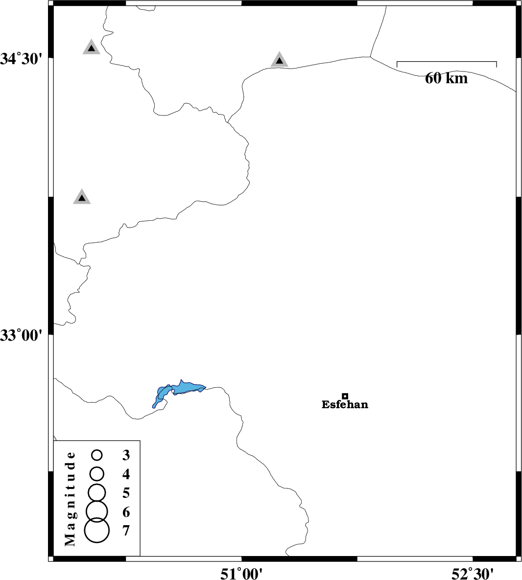 | 2014/03/27 | 01:09:18.6 | 05:39:18.6 | 33.28 | 51.28 | 18 | ML1.9 | Esfahan Province, 66 km North-East of Tiran |