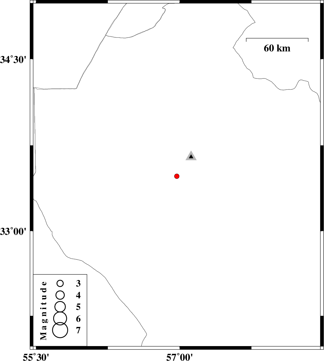 | 2014/04/08 | 00:08:00.4 | 04:38:00.4 | 33.48 | 56.97 | 16 | ML2.2 | Yazd Province, 14 km South of Tabas | ||