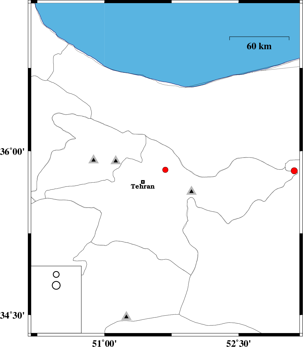 | 2014/04/08 | 17:38:04.0 | 22:08:04.0 | 35.82 | 53.12 | 14 | ML3.3 | Tehran Province, 33 km South of Pol-E-Sefid |
