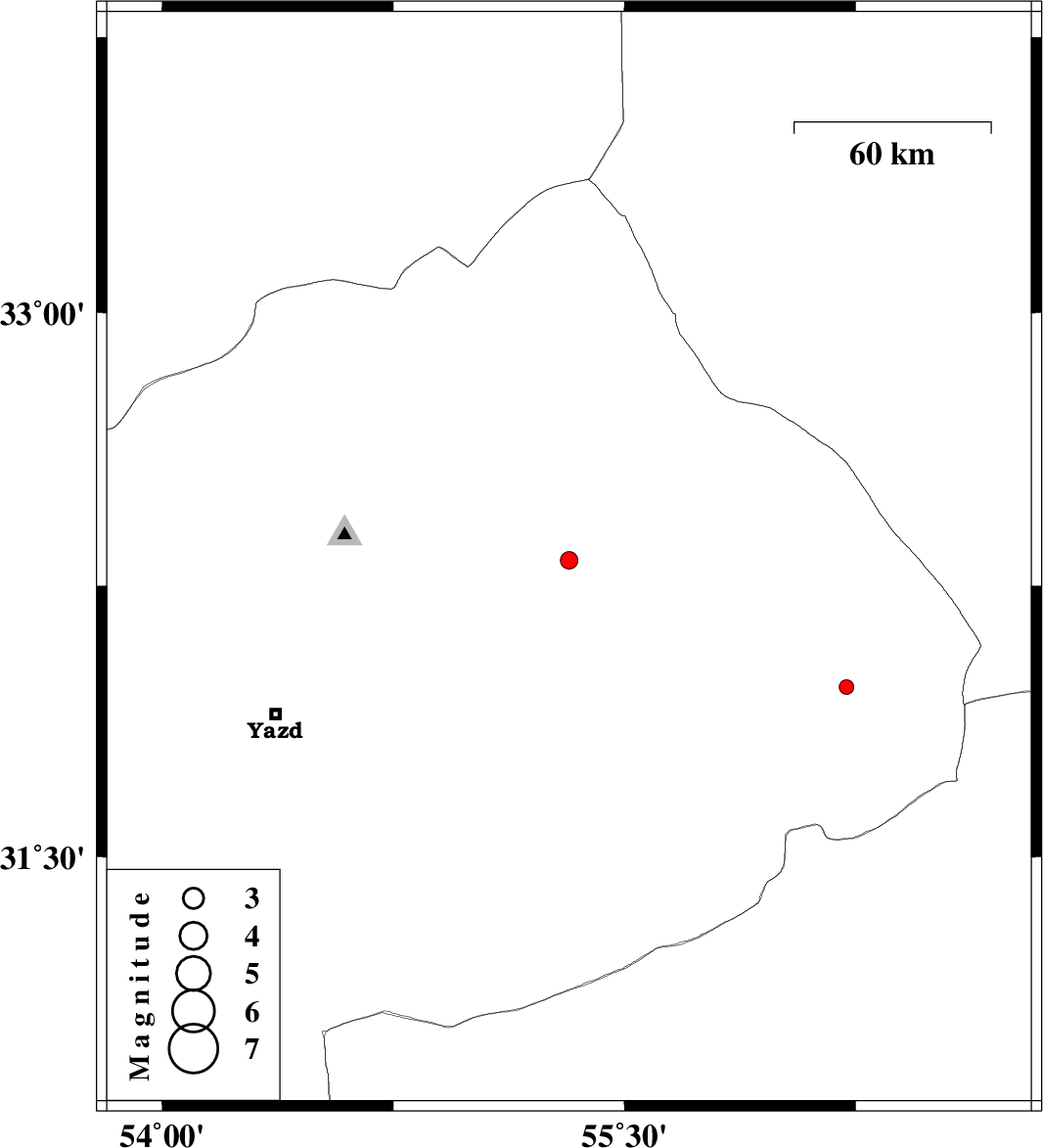 | 2014/04/15 | 02:04:59.9 | 06:34:59.9 | 31.97 | 56.22 | 34 | ML2.1 | Yazd Province, 88 km North-East of Bafq |