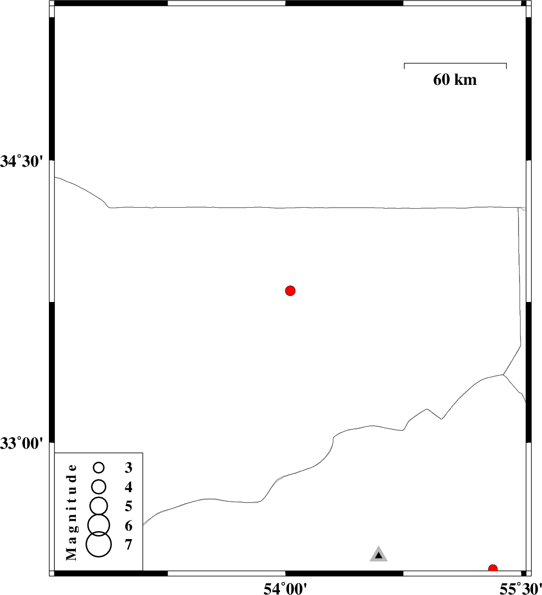 | 2014/04/21 | 21:26:44.0 | 01:56:44.0 | 32.32 | 55.32 | 18 | ML2.6 | Yazd Province, 80 km North of Bafq |