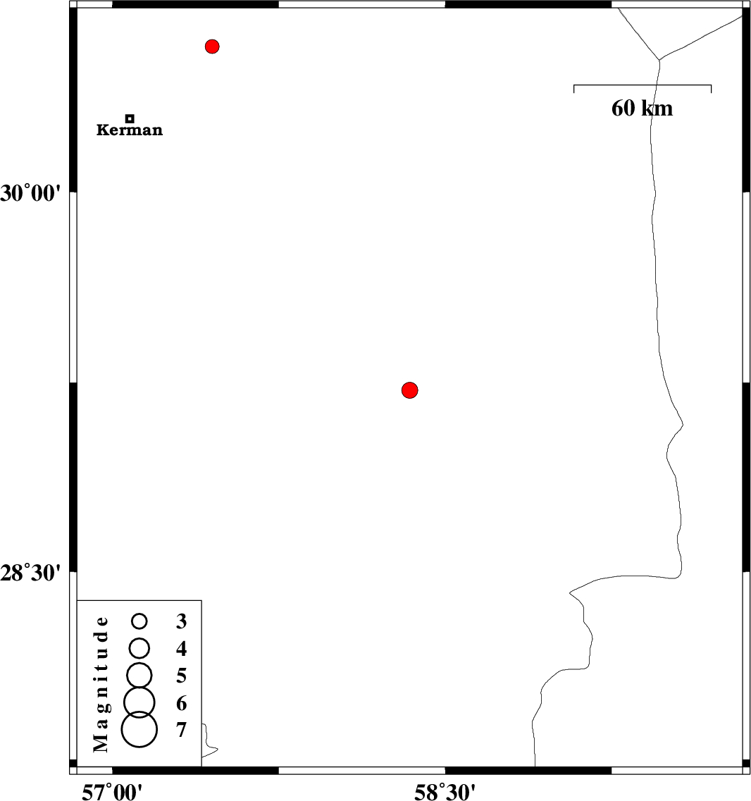 | 2014/04/23 | 11:15:41.9 | 15:45:41.9 | 30.57 | 57.45 | 14 | ML2.8 | Kerman Province, 47 km North-East of Kerman |
