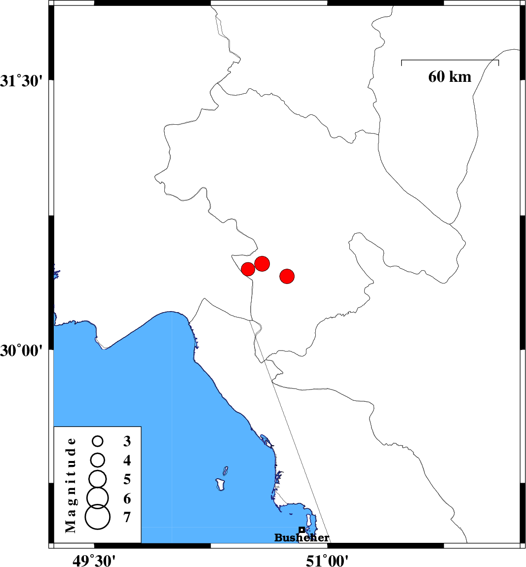 | 2014/04/24 | 07:44:29.3 | 12:14:29.3 | 30.45 | 50.49 | 18 | ML3.9 | Kohkiluieh va boyerahmad Province, 28 km South-East of Behbahan | ||