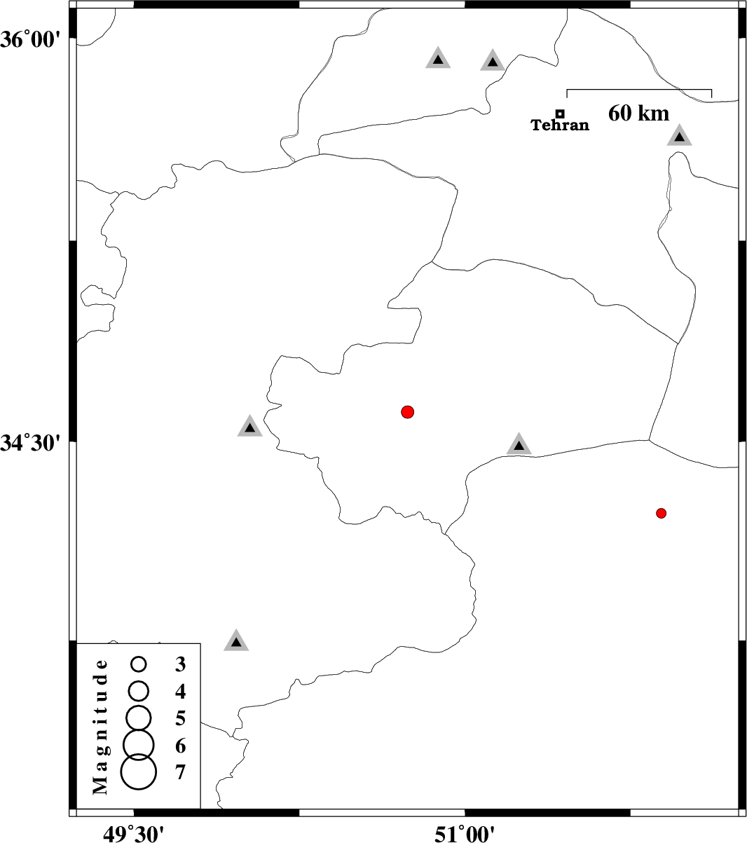 | 2014/04/30 | 09:44:53.3 | 14:14:53.3 | 34.61 | 50.74 | 15 | ML2.5 | Qom Province, 13 km West of Qom | ||
