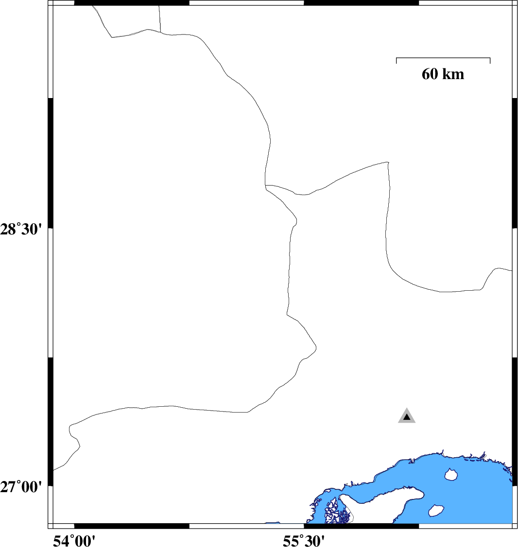 | 2014/04/12 | 06:02:18.9 | 10:32:18.9 | 27.38 | 56.81 | 15 | ML3.3 | Hormozgan Province, 43 km West of Dehbarez | ||