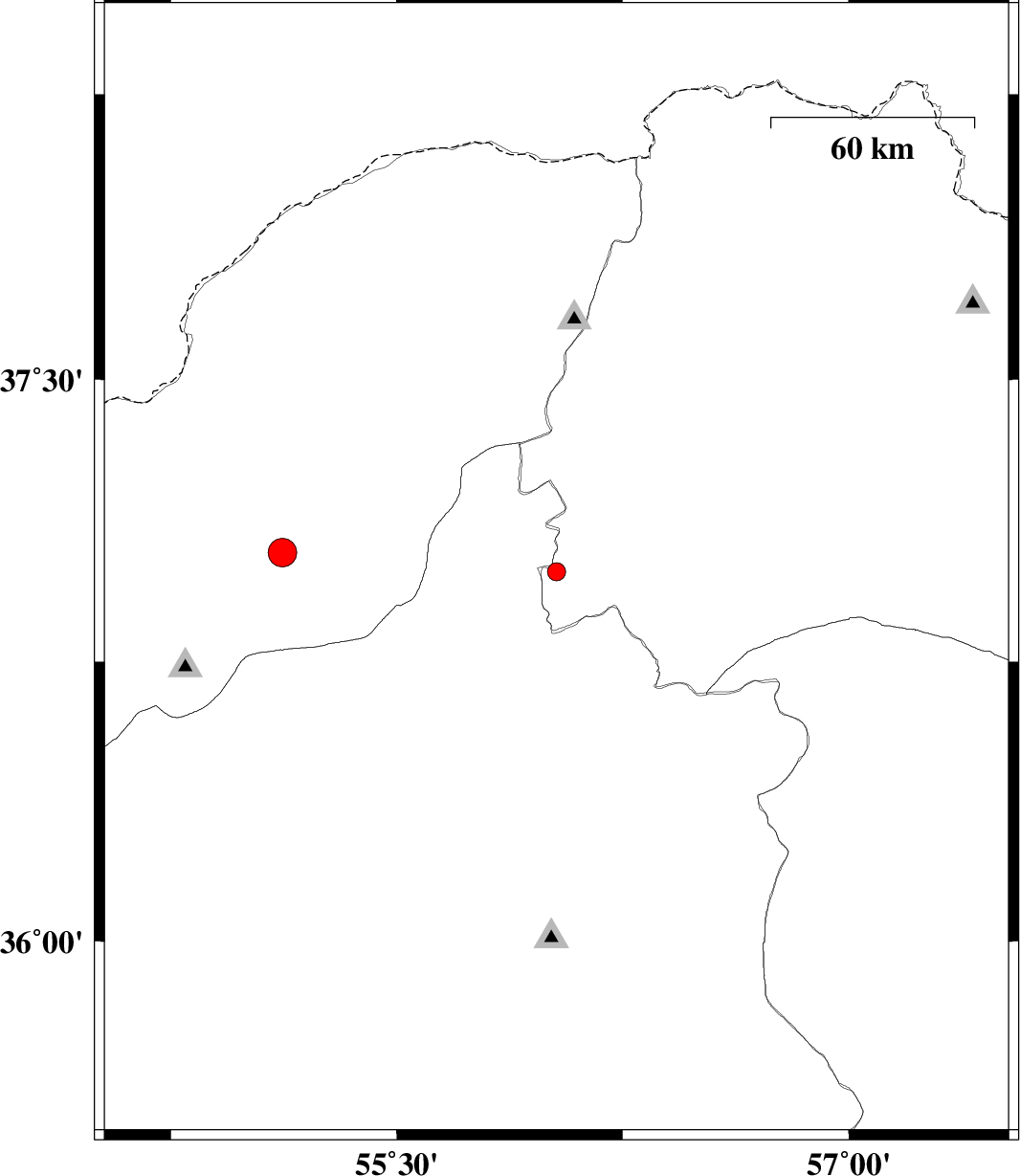 | 2014/06/13 | 09:12:25.2 | 13:42:25.2 | 37.04 | 55.12 | 14 | ML4.3 | Golestan Province, 4 km Ramian |