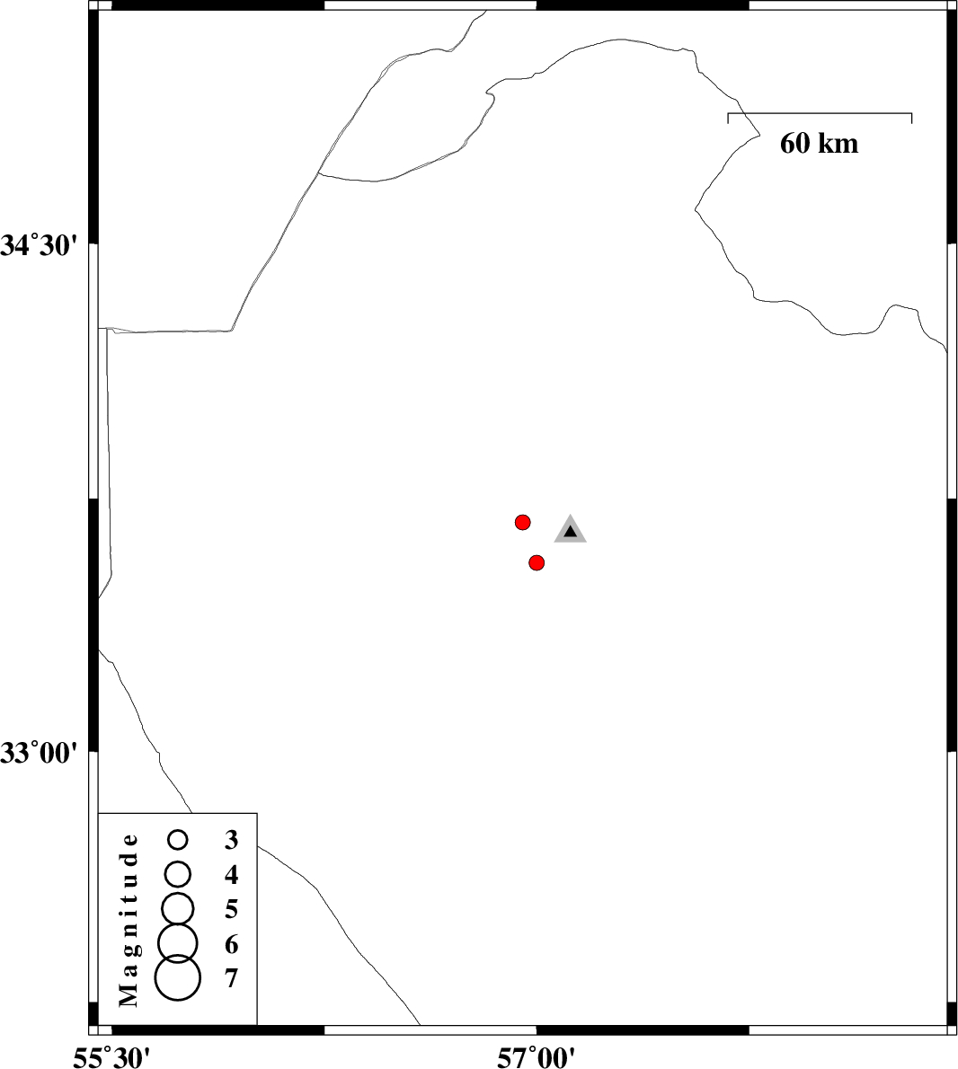 | 2014/06/29 | 22:18:36.2 | 02:48:36.2 | 33.68 | 56.95 | 18 | ML2.4 | Yazd Province, 9 km Tabas | ||
